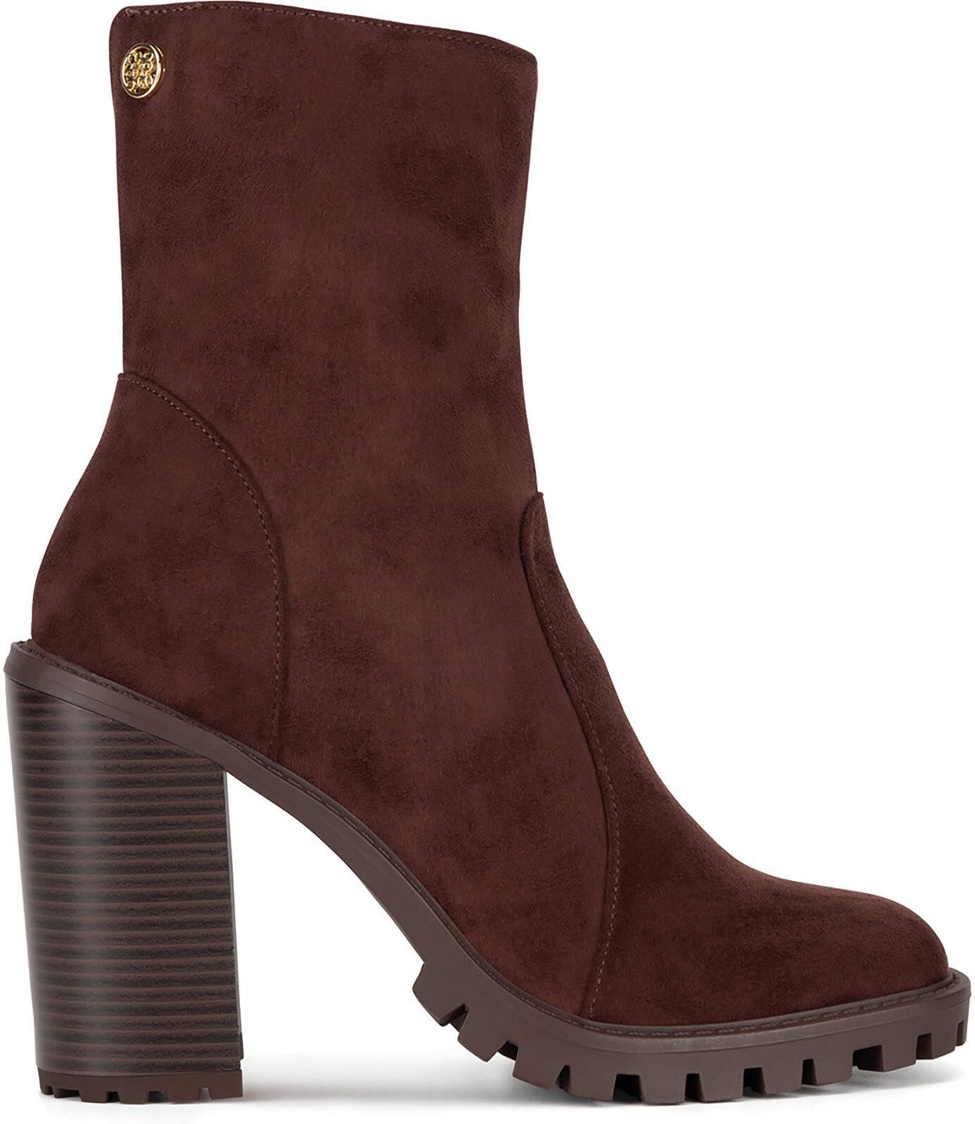 Dodaj szyku swojej garderobie z botkami marki Nine West w eleganckim, ciemnobrązowym kolorze! Wykonane z wysokiej jakości materiału włókienniczego, te buty nie tylko prezentują się efektownie, ale także są trwałe i łatwe w utrzymaniu. Wyposażone w praktyczne zapięcie na suwak, zapewniają komfortowe i szybkie zakładanie. Stabilny słupek dodatkowo podkreśla ich elegancki charakter, jednocześnie dbając o wygodę podczas codziennego noszenia. Te botki to idealny wybór dla kobiet ceniących sobie styl i funkcjonalność na co dzień. Postaw na Nine West i ciesz się modnym wyglądem w każdej sytuacji! Nine West to amerykańska marka modowa, której początki sięgają lat 70. Swoją nazwę zawdzięcza adresowi budynku przy jednej z ulic Nowego Jorku. Marka szybko zyskała sporą popularność, dzięki czemu posiada butiki niemal na wszystkich kontynentach. Nine West znane jest ze swoich odważnych, ale eleganckich projektów. W naszej ofercie znajdziesz szykowne buty i torebki dla kobiet, które lubią nowojorski styl glamour. Zachwycą Cię szczególnie skórzane botki, czółenka czy sandały na obcasie z gustownymi ozdobami. Odkryj całą ofertę Nine West w CCC!