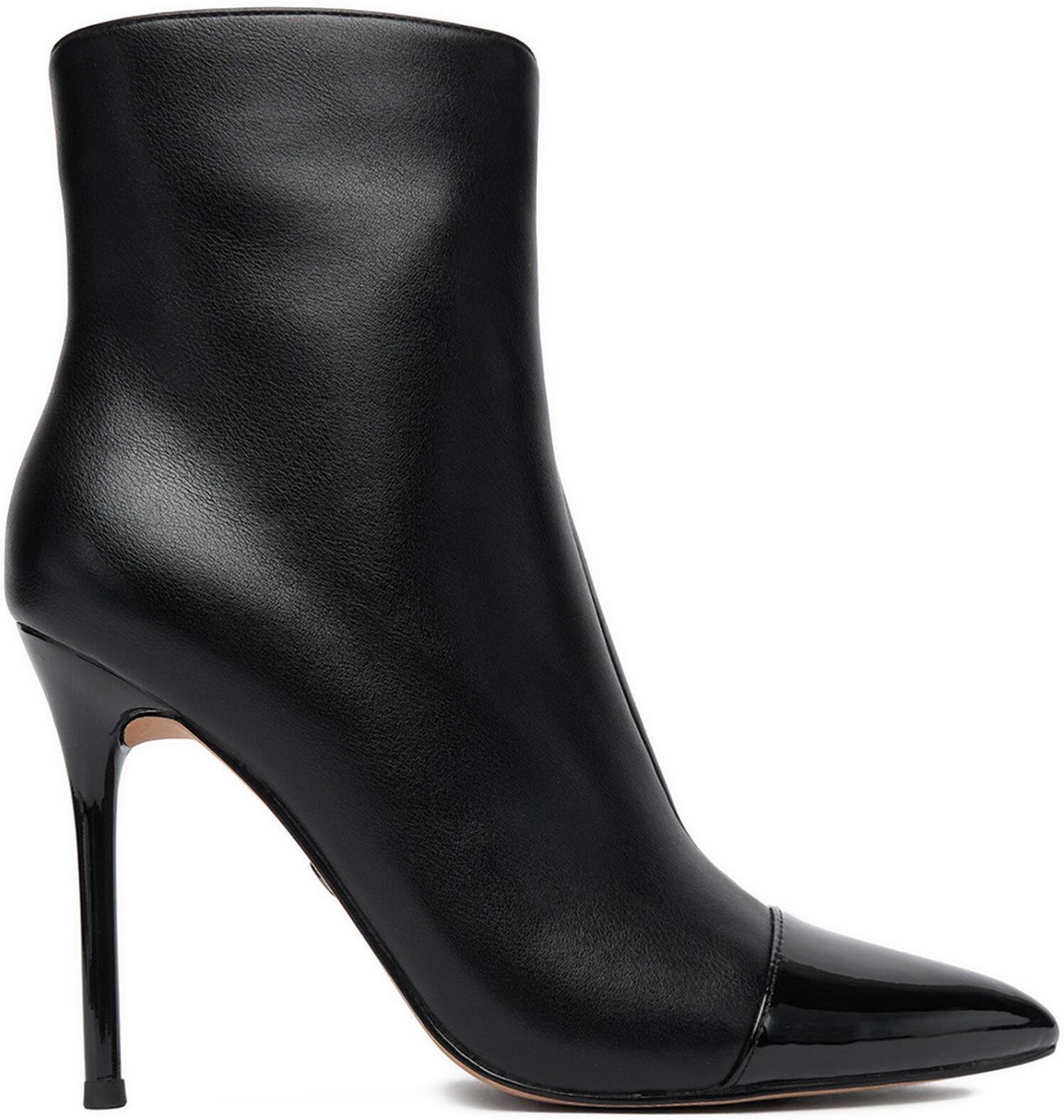 Dodaj do swojej kolekcji elegancji z damskimi botkami Nine West! Wykonane z wysokogatunkowego tworzywa syntetycznego, zachwycają nie tylko trwałością, ale także wyjątkowym designem. Szpilka doskonale podkreśla sylwetkę, dodając jej smukłości, a szpiczasty nosek nadaje butom szyku i klasy. Dzięki zapięciu na suwak ich zakładanie jest szybkie i wygodne, co dodatkowo zwiększa komfort użytkowania. Te botki to idealne uzupełnienie stylowych, kobiecych stylizacji – niezastąpione na wieczorne wyjścia czy specjalne okazje!