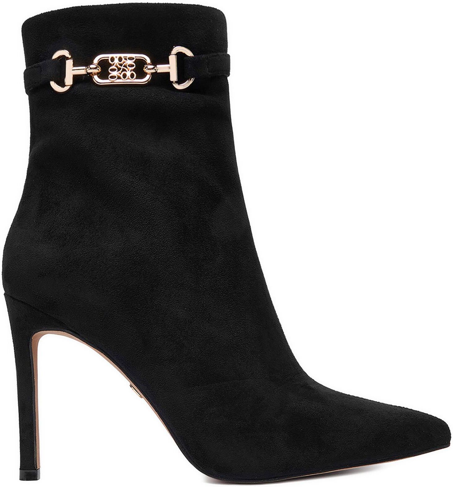 Dodaj do swojej kolekcji elegancji i stylu z damskimi botkami od Nine West! Wykonane z wysokiej jakości tworzywa syntetycznego, te botki zachwycają nowoczesnym designem i ponadczasową kobiecością. Ich szpiczasty nosek podkreśla smukłość stopy, a obcas w formie szpilki dodaje szyku i subtelności każdej stylizacji. Wnętrze z miękkiego materiału tekstylnego zapewnia komfort noszenia przez cały dzień. Idealne na wyjątkowe okazje, jak i na co dzień, te botki doskonale wpisują się w aktualne trendy modowe. Postaw na Nine West i poczuj się wyjątkowo!