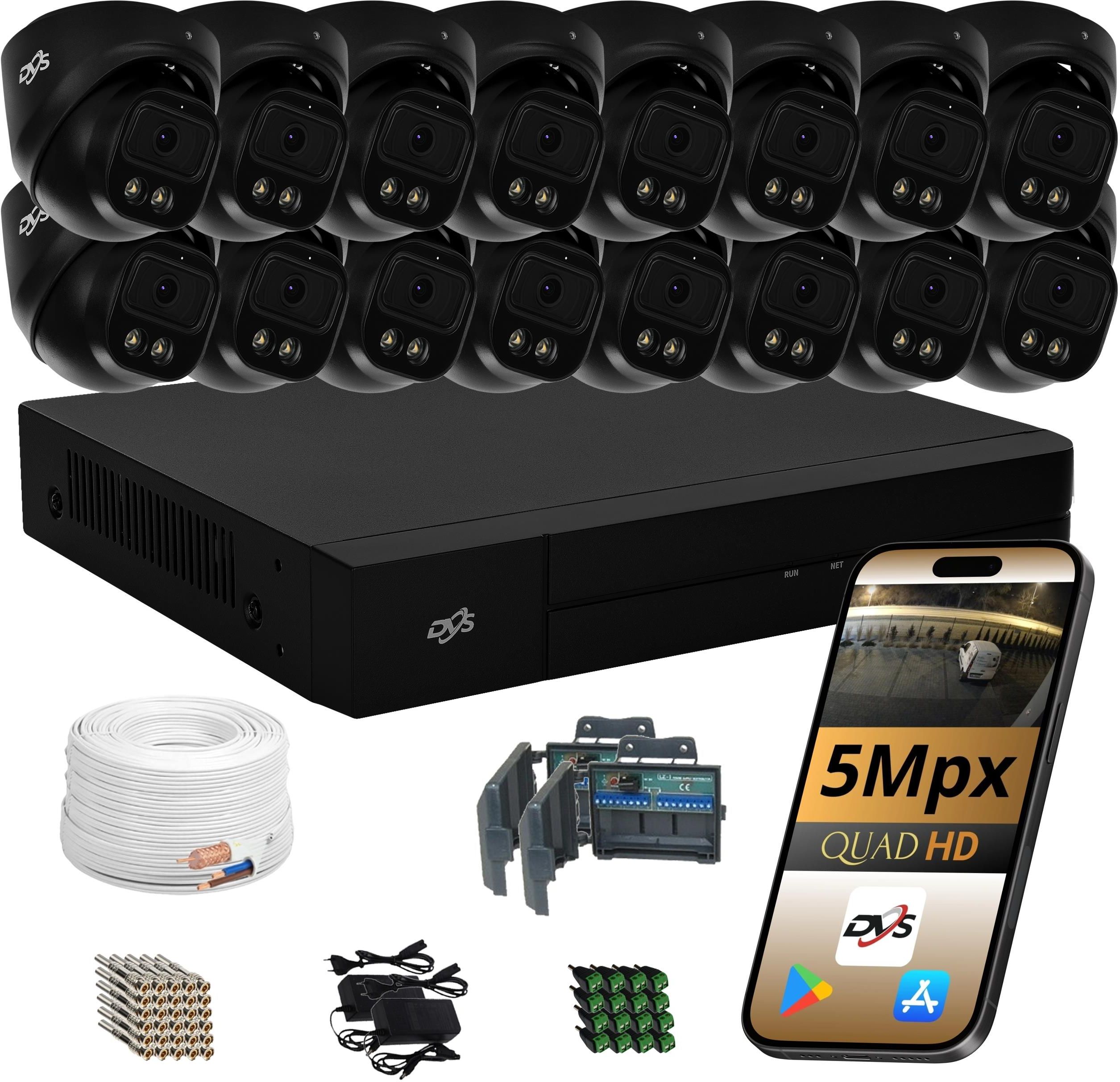 • ZESTAW 16 KAMER ZEWNĘTRZNA CZARNA KOPUŁKA 5MPX DVS