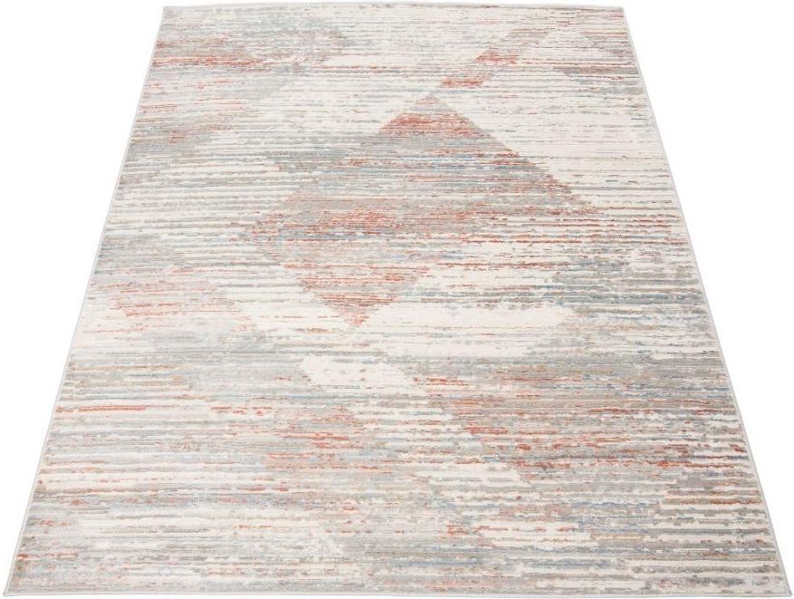 Dywan Portlandos 00.501c salmon z kolekcji Portlandos to prawdziwa perełka dla miłośników subtelnych, ale wyrazistych dodatków do wnętrz. Jego głównym kolorem jest delikatny, łososiowy odcień, który nadaje dywanowi ciepła i przytulności. Kolor ten jest doskonale uzupełniony przez dodatkowe barwy, takie jak szarości i biele, które tworzą harmonijną kompozycję. Wzór dywanu jestgeometryczny, składający się z delikatnych, poziomych linii, które tworzą efekt subtelnych fal. W centralnej części dywanu można zauważyć romboidalny wzór, który dodaje mu dynamiki i głębi. Kształt dywanu jest prostokątny, co sprawia, że idealnie wpasuje się w różne przestrzenie, zarówno te nowoczesne, jak i klasyczne. Inspiracją do urządzenia wnętrza z dywanem Portlandos 00.501c salmon może być stworzenie przestrzeni, która łączy w sobie spokój i elegancję. Wyobraź sobie salon, w którym ściany są pomalowane naneutralny, jasny kolor, a meble w odcieniach szarości i bieli tworzą tło dla tego dywanu. Sofa w pastelowym różu lub delikatnym beżu będzie idealnie współgrała z łososiowym odcieniem dywanu. Dodaj kilka poduszek w geometryczne wzory, które będą nawiązywać do wzoru dywanu, oraz minimalistyczne, metaliczne dodatki, jak lampa stołowa czy ramki na zdjęcia. Rośliny doniczkowe w prostych, białych donicach dodadzą wnętrzu świeżości i naturalności. W tak urządzonym wnętrzu dywan Portlandos 00.501c salmon stanie się centralnym punktem, który przyciąga wzrok i nadaje całości harmonii. Dywan Portlandos 00.501c salmon to doskonały wybór dla osób ceniących sobie elegancję i nowoczesność w jednym. Jego geometryczny wzór i subtelna kolorystyka sprawiają, że będzie idealny dla tych, którzy chcą dodać wnętrzu charakteru bez nadmiernej ekstrawagancji. Brak frędzli dodaje mu współczesnego wyglądu, co sprawia, że będzie pasował zarówno do minimalistycznych, jak i bardziej tradycyjnych aranżacji. Zachęcamy do zakupu tego dywanu, jeśli szukasz dodatku, który odmieni Twoje wnętrze, dodając mu klasy i stylu. Dywany PORTLANDOS to oferta dla preferujących zarówno nowoczesność jak i tradycję. Dywany zostały wykonane z najwyższej jakości przędzy ppolipropylen z połączeniem poliestru. Kolekcja szczególnie wyróżniają się poprzez bardzo wysoką odporność na ścieranie, a ich włókna są sprężyste oraz nie ulegają odkształceniom. Posiadają wysoki współczynnik przewodnictwa cieplnego, dlatego mogą być używane w pomieszczeniach z ogrzewaniem podłogowym. W kolekcji dywanów PORTLANDOS znajdziesz szeroką gamę nowoczesnych oraz tradycyjnych wzorów w rożnych wariantach rozmiarowych i odcieniach kolorystycznych. Są wyjątkowo łatwe do czyszczenia, w tym do odkurzania i do prania na mokro z użyciem szamponów.