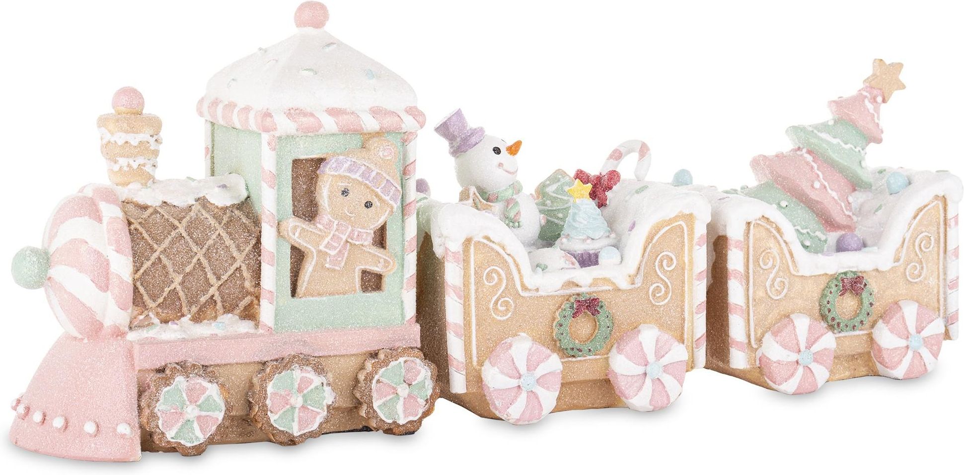 Figurka Pociąg Boże Narodzenie / Figurki i Ozdoby / Figurki Kelly Rozmiar: 19x45x10,5 Pakowanie: 4/1 Waga: 1.13 kg Materiał: tworzywo sztuczne Kolor: wielokolorowy