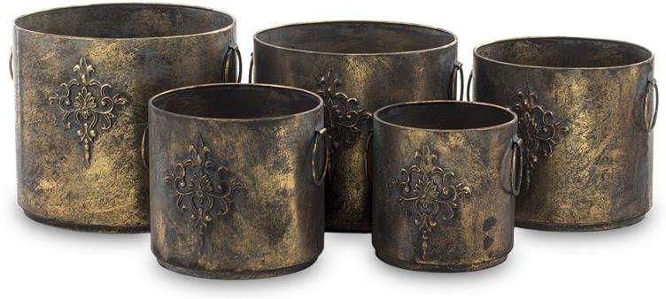 Osłonka Kpl 5 Szt.. Materiał: metal. Rozmiar: 26,5x31,5x31,5 25x28,5x28,5 23. Kolor: złoty, patyna. Dekoracje z Kolekcji Metale Antyk mają duszę, a ka...
