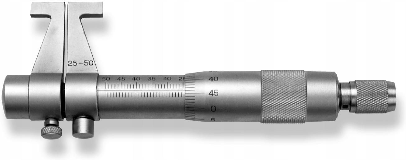 Odczyt (mm) 0,01 Zakres: 25-50 mm Chromowany korpus Powierzchnie pomiarowe hartowane Pokrto ustalajce