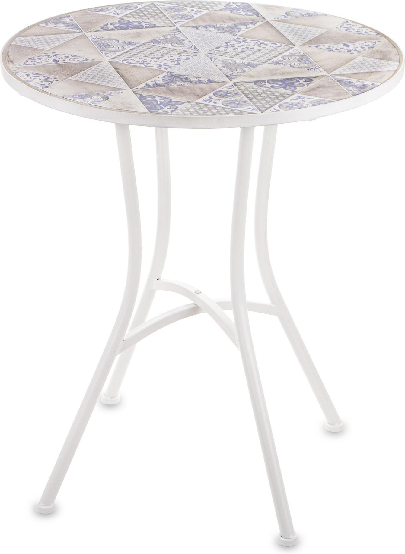 Stolik Z Mozaiką Metaloplastyka / Meble i Kwietniki Ogrodowe Rozmiar: 71 x 61 x 61 cm Materiał: metal Kolor: biały z mozaiką