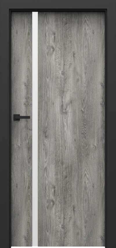 KONSTRUKCJA SKRZYDŁA Wypełnienie stanowi „plaster miodu” lub płyta wiórowa otworowa wzmocniona wewnętrznym ramiakiem ze sklejki (opcja za dopłatą). Całość obłożona jest płytą HDF. Wzory przeszklone z szybą matową hartowaną o grubości 8 mm, która stanowi element konstrukcyjny skrzydła. Charakterystyczną cechą kolekcji jest zastosowanie obrzeża ABS (boki skrzydła) w kolorze czarnym lub białym AKCESORIA W CENIE SKRZYDŁA Zawiasy bezprzylgowe 3D dwa lub trzy (opcja za dopłatą) w kolorze ościeżnicy czarne lub białe Zamek z czołem w kolorze obrzeża skrzydła - czarny lub biały Szyba hartowana matowa o grubości 8 mm. OŚCIEŻNICE Porta SYSTEM ELEGANCE w kolorze czarnym lub białym UWAGI Aprobata Techniczna AT-15-6515/2016, ITB Warszawa. Podcięcie wentylacyjne w modelach przeszklonych dostępne w Polskiej Normie. Wypełnienie płyta otworowa i płyta pełna zawiera przygotowanie do skrótu w standardzie. Stały wymiar szyb. Trzy zawiasy w skrzydle o wymiarze „100“,