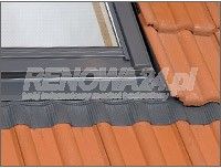 Kołnierz do okna dachowego ROOFLITE+ TFX M4A RAL 7043 78x98 do pokryć falistych Pasuje do okien Roofliete+ oraz Magnetic Neo Kołnierz do pokryć falistych RoofLITE+ TFX zapewnia bezpieczny, wodoszczelny montaż okna dachowego. Produkt jest odpowiedni do wszelkich rodzajów pokrycia dachowego o wysokości profilu 16-50 mm. Pozwala on na montaż okna dachowego w dachu krytym dachówką płaską o wysokości powyżej 16 mm, dachówką betonową, profilowaną dachówką ceramiczną, a także blachą falistą, blachodachówką oraz blachą trapezową. Całkowicie odporny na trudne warunki pogodowe i promieniowanie UV. Kołnierz składa się z czterech elementów: górnego, dolnego i dwóch elementów bocznych. Bezołowiowy, aluminiowy kołnierz zapewnia doskonałą szczelność montażu w profilowanych pokryciach dachowych. Piankowa uszczelka w kołnierzu zapobiega przenikaniu wody opadowej bądź śniegu. Kołnierz jest całkowicie odporny na wszelkie warunki pogodowe i promieniowanie UV. Analogicznie do elementów osłonowych okna dachowego RoofLITE+, kołnierz pomalowany jest na kolor ciemnoszary RAL 7043, dzięki czemu elementy te idealnie pasują do siebie od zewnątrz pod względem estetycznym. Zalecamy użycie kołnierza RoofLITE+ z każdym oknem dachowym RoofLITE+. Na kołnierz do pokryć profilowanych RoofLITE+ TFX udzielana jest 10-letnia gwarancja. Kołnierz można bez problemu instalować w dachach o kącie nachylenia od 15 do 90 stopni. Warto pamiętać, że 10-letnia gwarancja na okno dachowe RoofLITE+ obowiązuje wyłącznie w przypadku jego prawidłowego montażu wraz z kołnierzem uszczelniającym RoofLITE+. Zalety i korzyści • Odpowiedni do pokryć takich jak dachówka betonowa, profilowana dachówka ceramiczna, a także blacha falista. • Odporny na wszelkie warunki atmosferyczne i promieniowanie UV. • Zapewnia pełną szczelność połączenia okna z pokryciem dachowym. • Materiał: aluminium. • Nie zawiera ołowiu. • Łatwy montaż. • Do montażu na dachach o kącie nachylenia od 15 do 90 stopni. • 10 lat gwarancji. Kliknij i zobacz film jak wygląda montaż okna z kołnierzem TFX