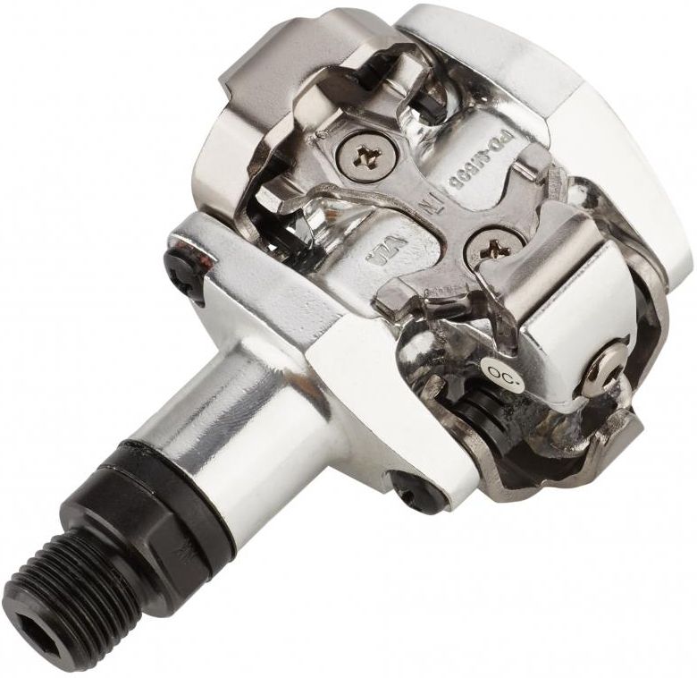 Pedały MTB PDM505 o konstrukcji SPD. Odwracalna blokada. Podstawowe pedały MTB dla początkujących. Regulowana siła blokady zacisku korka. Dobre właściwości czyszczenia pedałów w błotnistym terenie. Prosta konstrukcja zatrzasku ułatwia serwisowanie. Dostarczane ze stoperami SM-SH51 do jednostronnego zwalniania zacisku.Typ: MTB, Łączna waga opakowania: 392 g, Zastosowanie: XC/CX, dwustronne, SPD, srebrne, z zatyczkami SM-SH51, Materiał: korpus pedału (aluminium), blok (chrom + stal)