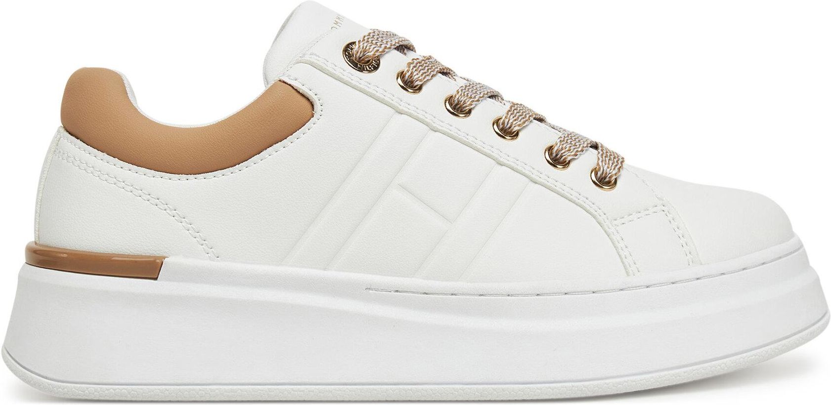 Białe sneakersy Tommy Hilfiger to kwintesencja minimalistycznej elegancji i ponadczasowego stylu. Wykonane z imitacji skóry, świetnie sprawdzą się jako uniwersalny dodatek do każdej stylizacji – od casualowych po bardziej wyrafinowane. Okrągły nosek zapewnia wygodę i swobodę noszenia, dzięki czemu idealnie nadają się na co dzień. To obuwie, które łączy w sobie modny design z funkcjonalnością, podkreślając charakter każdej kobiety. Wybierz sneakersy Tommy Hilfiger i ciesz się komfortem oraz wyjątkowym stylem na każdym kroku!