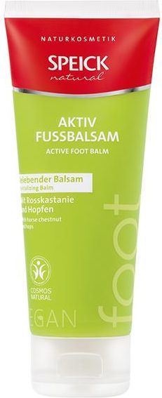 Nawilżający bogaty krem do stóp z linii Speick Natural Activ, do codziennego stosowania, dla osób aktywnych. Koi, łagodzi i nawilża zmęczone i obolałe stopy, pozwala skórze szybciej się zregenerować i zrelaksować. Zawiera wyciąg z kasztanowca, rozmaryn i chmiel. Organiczny olej sojowy i witamina F zapewniają intensywne nawilżenie, zapobiegają wysuszeniu i twardnieniu skóry na stopach. Wyciągi z kasztanowca i rozmarynu sprzyjają poprawie krążenia i łagodzą objawy tzw. "ciężkich nóg". Łagodnie odkażający chmiel działa równoważąco. Zawiera ekstrakt ze Speicka - cennej rośliny Valeriana Celtica z kontrolowanych dzikich zbiorów w wysokich Alpach.