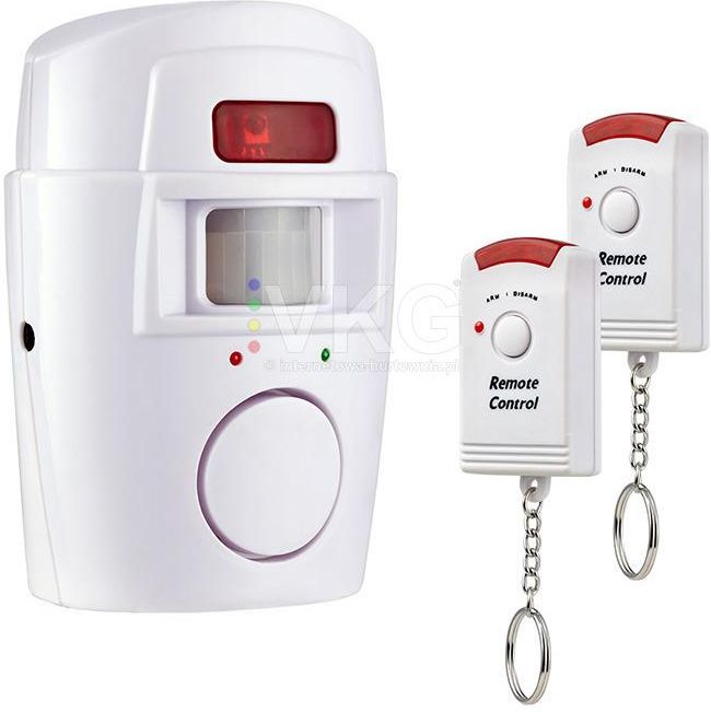 ALARM BEZPRZEWODOWY Z CZUJNIKIEM RUCHU + 2 PILOTY Doskonale nadaję się do zabezpieczania mieszkań, magazynów, sklepu oraz powierzchni dookoła budynków. Będzie idealnym "odstraszaczem" dla nieproszonych gości w miejscach, w których nie bywasz na co dzień, np. domek letniskowy, działka, garaż itp. …