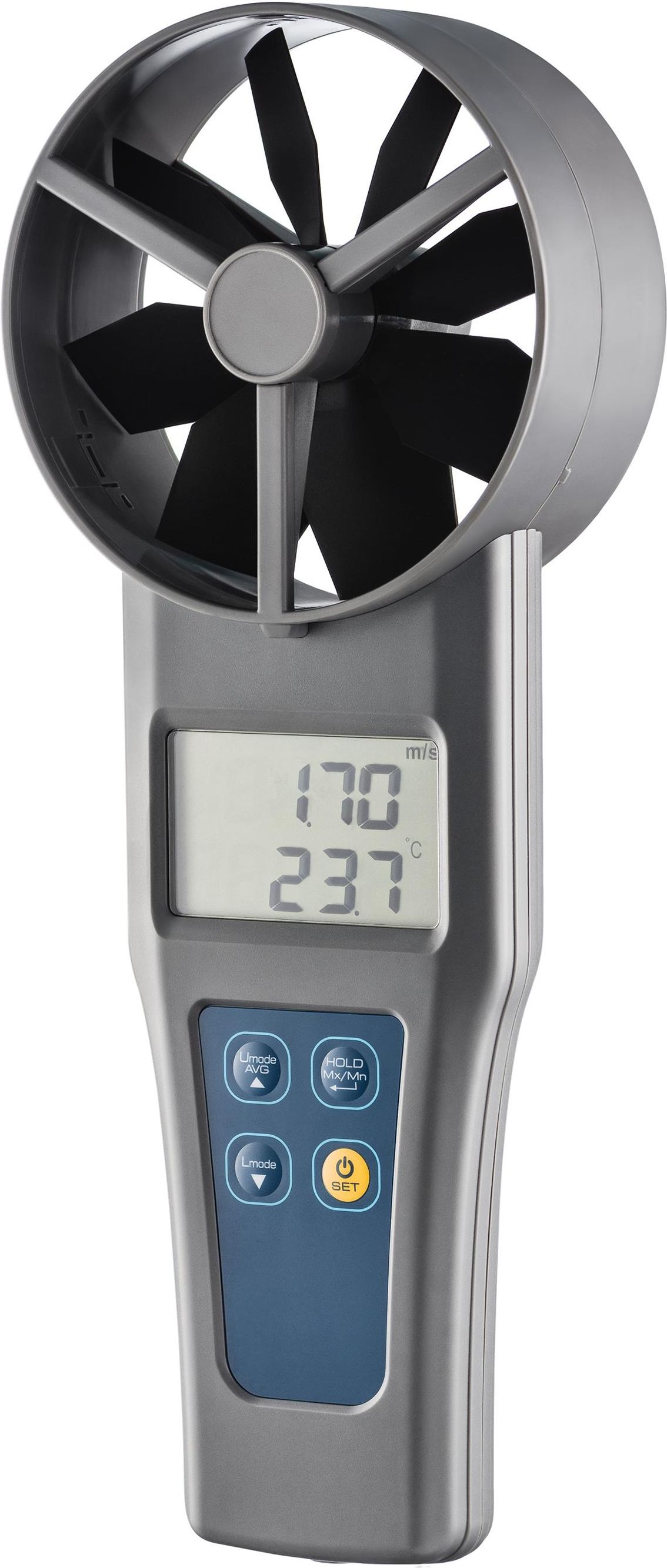 Termoanemometr AZ 8931 AZ 8931 to wielofunkcyjne urządzenie służące do bezpośredniego pomiaru prędkości i wydajności przepływu powietrza oraz temperatury. Na wbudowanym wyświetlaczu LCD mogą być wyświetlane jednocześnie dwa z wyżej wymienionych parametrów. Miernik charakteryzuje się wysoką czułością i dokładnością pomiarów. Wyposażony jest w wirnik skrzydełkowy o średnicy 10 cm zintegrowany z obudową. Urządzenie może pracować w trybach pomiarowych: dynamicznym, odczytu wartości minimalnych / maksymalnych (funkcja MIN i MAX) oraz średnich (funkcja AVG). Funkcja HOLD umożliwia zatrzymanie wskazań przy szybkozmiennej reakcji. Użytkownik ma możliwość zmiany jednostek odczytu m.in. dla temperatury: °C / °F; prędkości przepływu: m/s / fpm; powierzchni obszaru: cm² / inch²; wydajności przepływu powietrza: CMM / CFM. Użytkownik ma możliwość zmiany jednostek odczytu m.in. dla temperatury: °C / °F; prędkości przepływu: m/s / fpm; powierzchni obszaru: cm² / inch²; wydajności przepływu powietrza: CMM / CFM. AZ 8931 jest zasilany z 4 baterii alkalicznych typu AAA, dzięki czemu jest niezwykle lekki i poręczny. Posiada funkcję automatycznego odcięcia zasilania po 20 min. bezczynności oraz sygnalizację rozładowania baterii. Po wyłączeniu funkcji oszczędzania energii może pracować w trybie ciągłym np. podczas długotrwałych pomiarów. Podświetlany panel LCD ułatwia odczyt wskazań przy niskim natężeniu oświetlenia np. w nocy lub w słabo oświetlonych pomieszczeniach. Istnieje możliwość dokupienia kompatybilnych dzwonów służących do precyzyjnych pomiarów przy kratkach wentylacyjnych i anemostatach (model AZ 8916RNL). ZALETY Duży, czytelny, podświetlany wyświetlacz LCD Wysokiej czułości sensor do pomiaru temperatury Zintegrowany z obudową wirnik skrzydełkowy o średnicy 10 cm i niskiej wartości startowej Pomiar prędkości i wydajności przepływu powietrza Możliwość zmiany jednostek pomiarowych (system metryczny lub brytyjski) Przydatne funkcje: HOLD, MAX/MIN, AVG Automatyczne odcięcie zasilania po 20 min, z opcją dezaktywacji Sygnalizator poziomu naładowania baterii Lekki, poręczny i niezwykle dokładny Solidna konstrukcja i nowoczesny design Zastosowanie Do precyzyjnych pomiarów przy kratkach wentylacyjnych, anemostatach, nawiewu i systemów odprowadzania spalin, pomiaru prądów powietrza, prędkości wiatru, temperatury, kontroli regulatorów ciągu urządzeń pomocniczych dopływu powietrza, mechanicznej wentylacji nawiewnej. Informacje o produkcie Średnica wirnika-10 cm Wyświetlacz-LCD, 54 x 32.5 mm Dodatkowe funkcje-HOLD - zatrzymanie wskazań, MIN, MAX, AVG - tryb pomiarowy wartości: minimalnej, maksymalnej i średniej Dodatkowo w zestawie-4 x 1.5V DC baterie alkaliczne typ AAA, Walizka, Instrukcja obsługi w języku polskim Zakres pomiarowy-0.2 ~ 30 m/s (±39 ~ ±5905 fpm) Dokładność pomiaru ±1.5% odczytu +0.3 m/s (poniżej 20m/s)±3% odczytu +0.3 m/s (powyżej 20m/s)* Dokładność może się obniżać w trakcie użytkowania. Zaleca się regularną kalibracją urządzenia. Rozdzielczość pomiaru-0.01 (m/s) / 1 (fpm) Jednostki pomiaru-m/s, fpm Źródło zasilania: 4 x 1.5V DC baterie alkaliczne, typ AAA Oszczędzanie energii: Samoczynne wyłączanie zasilania po 20 minutach bezczynności, z opcją dezaktywacji Sygnalizacja rozładowania baterii: Tak Pomiar prędkości powietrza Zakres pomiarowy 0.2 ~ 30 m/s (±39 ~ ±5905 fpm) Dokładność pomiaru ±1.5% odczytu +0.3 m/s (poniżej 20m/s), ±3% odczytu +0.3 m/s (powyżej 20m/s) * Dokładność może się obniżać w trakcie użytkowania. Zaleca się regularną kalibracją urządzenia. Rozdzielczość pomiaru 0.01 (m/s) / 1 (fpm) Jednostki pomiaru m/s, fpm Pomiar wydajności przepływu powietrza Zakres pomiarowy: 0 ~ 9999.9 (CMM) / 0 ~ 99999 (CFM) Rozdzielczość pomiaru: 0.1 (CMM) / 1 (CFM) Jednostki pomiaru: CMM (m3/min) / CFM (ft3/min) Pomiar temperatury Zakres pomiarowy -20 ~ 60°C (-4 ~ 140°F) Dokładność pomiaru ±0.6°C (±1.0°F) * Dokładność może się obniżać w trakcie użytkowania. Zaleca się regularną kalibracją urządzenia. Rozdzielczość pomiaru 0.1 Jednostki pomiaru °C / °F Warunki pracy i składowania Warunki pracy - Temperatura: 0 ~ 50°C, Wilgotność: do 80% RH, bez kondensacji Warunki przechowywania - Temperatura: -10 ~ 50°C - bez baterii, Wilgotność: do 90% RH, bez kondensacji
