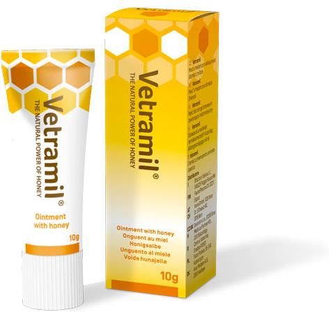 Maść Bfactory Vetramil 10 g Miód w Vetramil zapewnia długotrwałą ochronę przed wpływami zewnętrznymi. Dodane olejki eteryczne zwiększają naturalną odporność skóry. W skład tej gamy produktów wchodzą maści w opakowaniach o różnej wielkości oraz uniwersalny spray. Wszystkie preparaty Vetramil można scharakteryzować w następujący sposób: Zawierają miód jako substancję czynną. Miód jest bogaty w enzymy. Odpowiednia dla skóry wartość pH zwiększa jej zdolność do samoregeneracji. Odpowiedni dla małych i dużych zwierząt. Przyjazny dla skóry. Naukowo udowodnione.