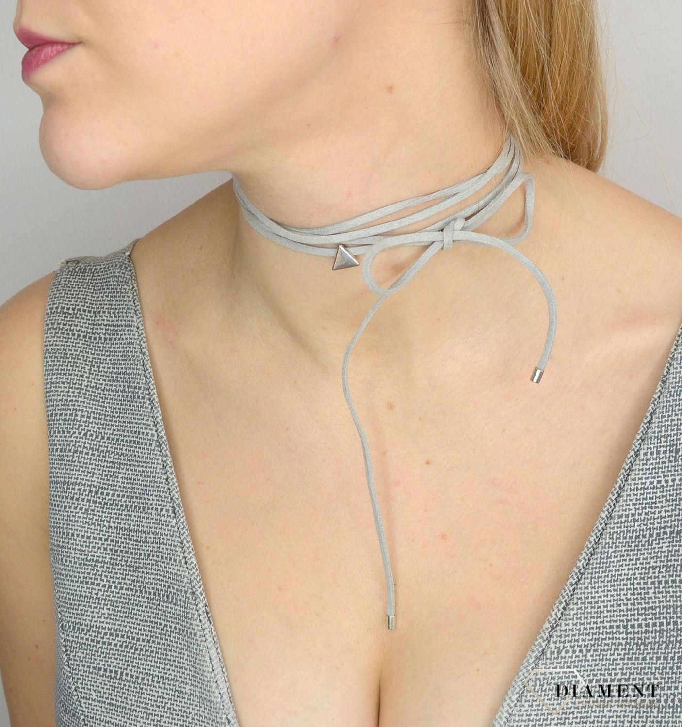 Naszyjnik choker damski szary By Dziubeka trójkącik. Nowoczesny naszyjnik damski wykonany został z skóry ekologicznej w modnym kolorze szarości, zdobiony niewielkim trójkątem w kolorze srebra, stanowi doskonały prezent na każdą okazję 🤩 Minimalizm w najpiękniejszym wydaniu. Całkowita długość …