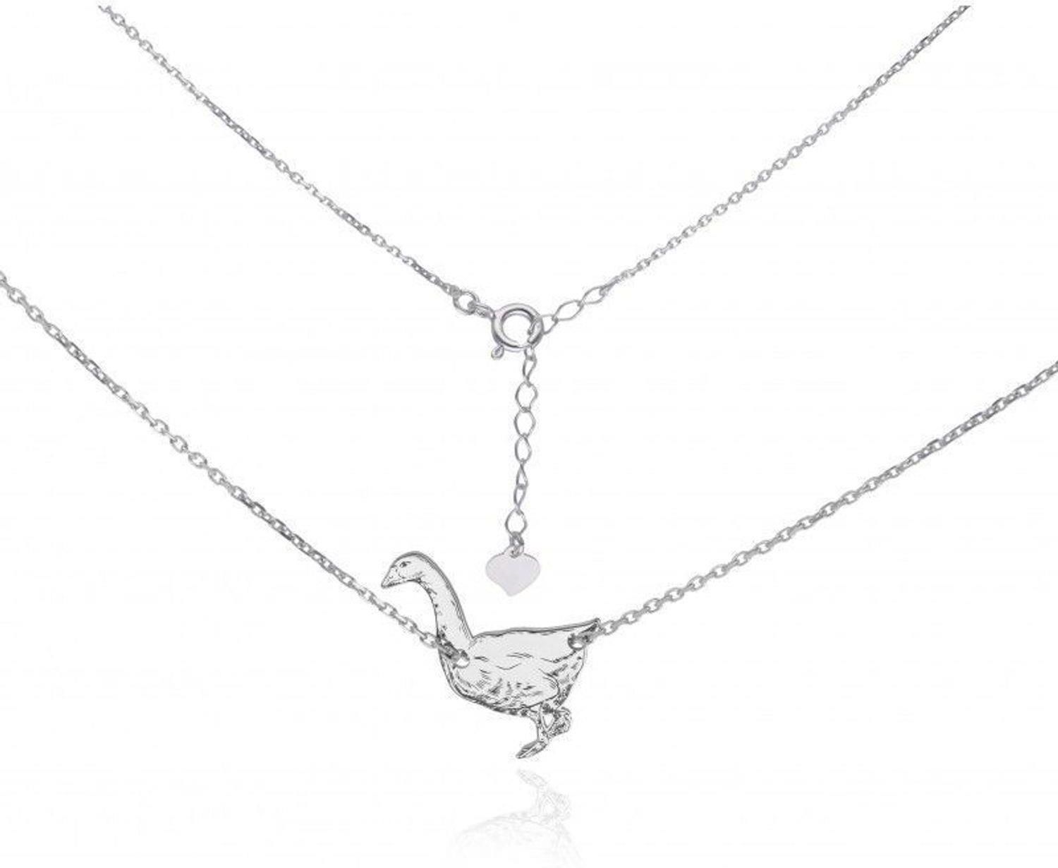 Srebrny naszyjnik z gęsią celebrytka 45 cm Gęś NS060823R. Srebrny naszyjnik damski celebrytka 45 cm Gęś Naszyjnik wykonany z najwyższej jakości srebra. Idealny pomysł na prezent dla każdej kobiety. Naszyjnik z Gęsią wykonany z próby 925 będzie idealnym prezentem dla ukochanej kobiety. Srebrny naszyjnik damski ozdobiony modnym wzorem gęsi. Naszyjnik srebrny posiada zapięcie na karabińczyk dając pełną swobodę podczas codziennego użytkowania. Srebrne Naszyjniki dla kobiet to biżuteria lubiana przez wiele Pań, rozmaitość wzorów i różnorodność kamieni sprawia że każda z Pań znajdzie coś wyjątkowego dla siebie. Zmysłowa srebrna biżuteria może być ozdobiona różnym wzorem bądź grawerem dzięki czemu będzie idealnym pomysłem na prezent. Długość naszyjnika: 42 cm Waga : 4,10 gram