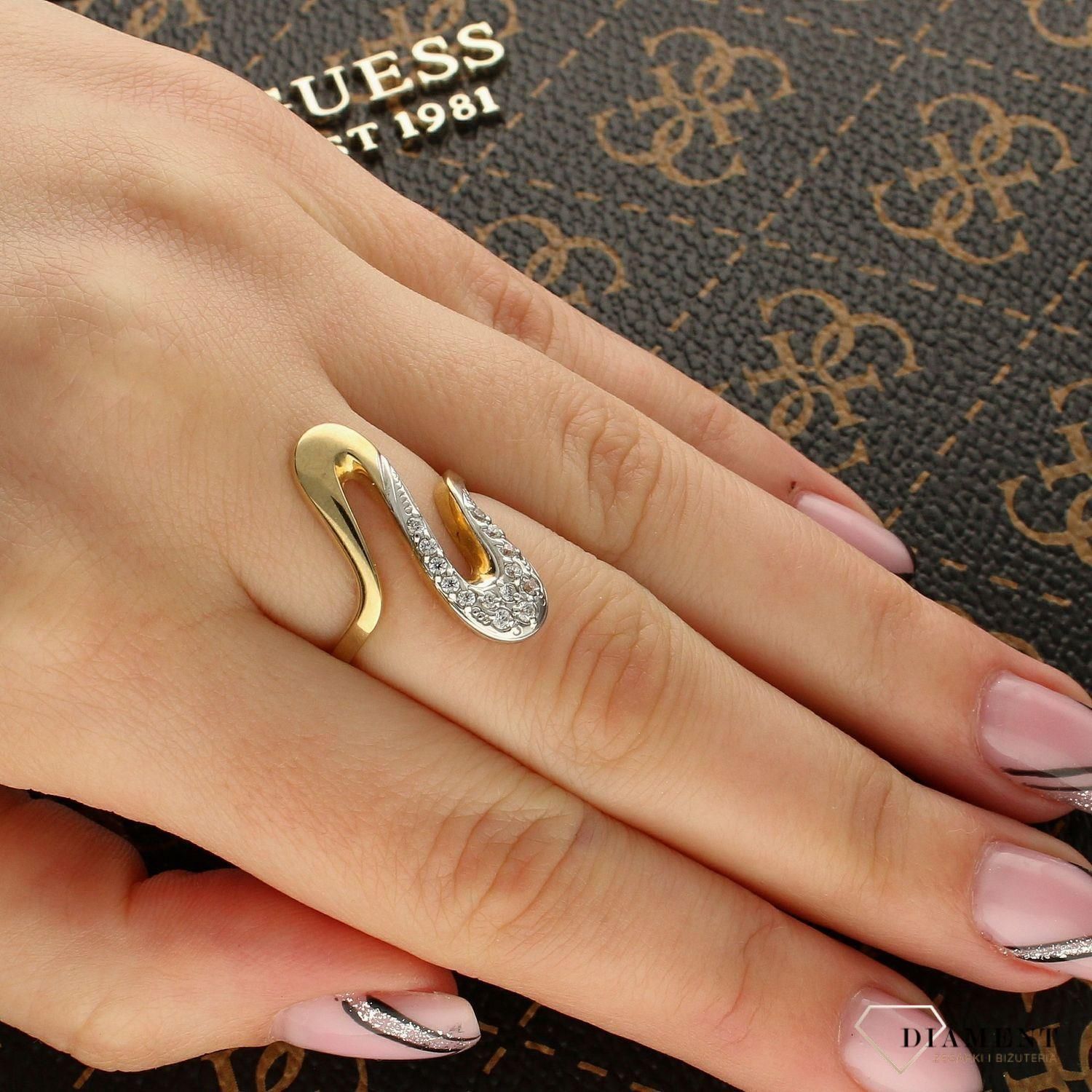 DIAMENT ZŁOTY PIERŚCIONEK FALA Z CYRKONIAMI Trzemeszno