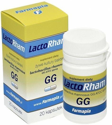 LACTORHAM, probiotyk, 20KAPSUŁEK RODZAJ REJESTRACJI: Suplement diety PRODUCENT: Farmapia sp. z o.o. ADRES PRODUCENTA: ul. Willowa 1, 32-050 Skawina ILOŚĆ: 20 kapsułek OPIS LACTORHAM to nowoczesny probiotyk zawierający bakterie kwasu mlekowego typu Lactobacillus rhamnosus GG ATCC 53103. 1 kapsułka zwiera 2,5 mld bakterii. Produkt utrzymuje naturalną równowagę bakteryjną w przewodzie pokarmowym, odbudowuje florę bakteryjną po antybiotykoterapii. Wskazania: w celu odbudowania flory bakteryjnej po antybiotykoterapii, codzienne uzupełnienie flory bakteryjnej, przewlekłe zapalenie jelit, profilaktycznie dla osób korzystających z basenu, sauny, itp. SPOSÓB UŻYCIA 1 kapsułka 1 raz dziennie. OSTRZEŻENIA Nie przekraczać zalecanej porcji do spożycia w ciągu dnia. Przechowywać w temperaturze pokojowej, w sposób niedostępny dla małych dzieci.Zrównoważony sposób żywienia i prawidłowy tryb życia jest ważny dla funkcjonowania organizmu człowieka.Suplement diety nie może być stosowany jak substytut (zamiennik) zróżnicowanej diety. SKŁAD Substancją czynną preparatu jest sczep żywych kultur bakterii kwasu mlekowego z rodzaju Lactobacillus rhamnosus GG ATC 53103. 1 kapsułka zawiera 2,5 mld bakterii. NIE ZAWIERA LAKTOZY.