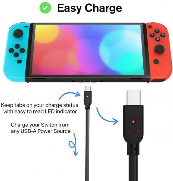 Nyko Charge Link for Nintendo Switch, Switch Lite, and Switch OLED in Black - 2,44m Trzemeszno