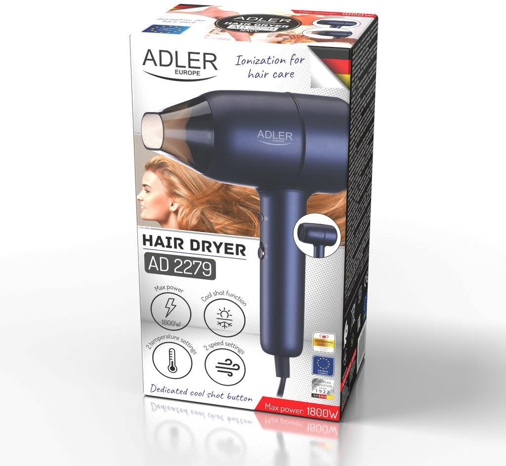 Suszarka do włosów Adler AD 2279b z jonizacją i funkcją chłodnego nadmuchu Suszarka do włosów Adler AD 2279b to urządzenie, które z pewnością zaspokoi potrzeby nawet najbardziej wymagających użytkowników. Inwestując w ten model, otrzymujesz wysokiej jakości sprzęt do stylizacji włosów, który łączy nowoczesne technologie z funkcjonalnością. Dzięki jonizacji, Twoje włosy będą wygładzone, a ich elektryzowanie się zostanie zredukowane, co przyczyni się do ich zdrowego wyglądu. Wygodne ustawienia temperatury oraz siły nadmuchu pozwalają na indywidualne dopasowanie do Twojego typu włosów, co sprawia, że suszenie staje się szybkie i efektywne. 2 stopnie siły nadmuchu – dostosuj intensywność suszenia do swoich potrzeb. 2 ustawienia temperatury – idealne dla różnych rodzajów włosów. Przycisk chłodnego nadmuchu – umożliwia utrwalenie fryzury i zwiększa jej blask. Technologia jonizacji – eliminacja elektryzowania się włosów, poprawia ich kondycję. Koncentrator powietrza – idealny do precyzyjnego stylizowania fryzur. Długość przewodu zasilającego: 180 cm – zapewnia wygodę użytkowania. Moc maksymalna: 1800W – szybkie i skuteczne suszenie. Suszarka Adler AD 2279b to połączenie funkcjonalności z nowoczesną technologią, które sprawi, że Twoje włosy będą wyglądały zdrowo i pięknie. Wybierz sprawdzoną jakość, która spełni Twoje oczekiwania w każdej sytuacji! Moc maksymalna: 1800W Technologia jonizacji: Tak Przycisk chłodnego nadmuchu: Tak Liczba ustawień temperatury: 2 Liczba stopni siły nadmuchu: 2 Koncentrator powietrza: Tak Długość przewodu zasilającego: 180 cm Materiał obudowy: Tworzywo sztuczne Kolor: Czarny Waga produktu: 1,2 kg Wymiary produktu: 22 x 8 x 27 cm Przeznaczenie: Suszenie i stylizacja Przycisk on/off: Tak Bezpiecznik: Tak Producent: Adler SKU: AD 2279b Produkt nowy i oryginalny - Zapewniamy, że oferowany przez nas produkt jest całkowicie nowy i oryginalny. Kompletny zestaw - Produkt dostarczany jest w oryginalnym opakowaniu, z pełnym zestawem akcesoriów, dokładnie tak jak dostarcza go producent. Autentyczność - Nasz produkt pochodzi z oficjalnych kanałów dystrybucji w Unii Europejskiej, co gwarantuje jego autentyczność oraz bezpieczeństwo użytkowania. Wsparcie producenta - Produkt objęty jest oficjalnym wsparciem producenta, zapewniającym pomoc i serwis na wysokim poziomie.