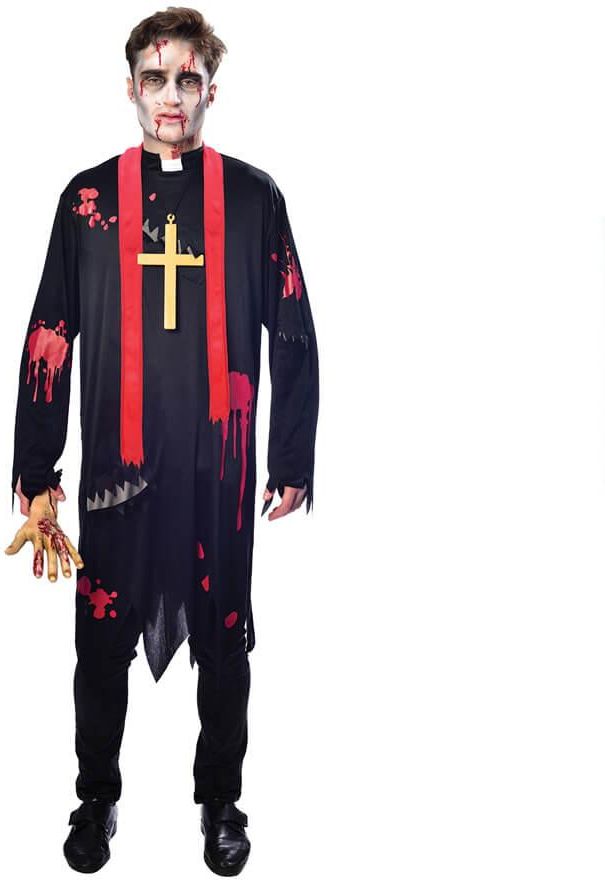 Szukasz kostiumu na Halloween, karnawał lub imprezę tematyczną? Jeśli tak, to kostium Zombie Priester, firmy Amscan jest dokładnie tym, czego szukasz Kostium odpowiada rozmiarowi L dla mężczyzn W zakres dostawy wchodzi czarny, krwisty szal, czerwony szal i łańcuszek ze złotą zawieszką w kształcie …