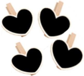 Serca - klamerki z tablicówką. 4 sztuki w opakowaniu. Wymiar pojedynczej klamerki 5.5x6.5cm. Wymiary: 135x125 mm