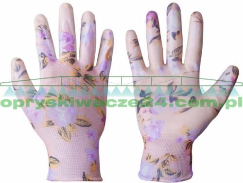 Rękawice Nitrox Flowers RWNF6, rozmiar 6 – lekkie, powlekane nitrylem i ozdobione kwiatowym wzorem; elastyczne, chronią dłonie przy pracach domowych i ogrodowych.