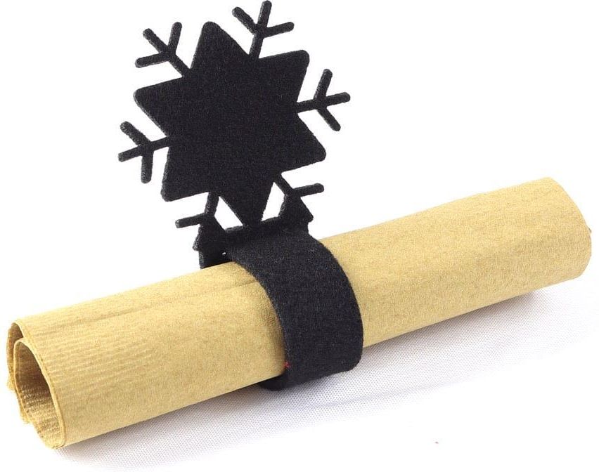 Serwetnik z wzorkiem świątecznym to dekoracja idealna na Boże Narodzenie. Pięknie przyozdobi Twój stół wigilijny i pomoże w stworzeniu świątecznej atmosfery. Materiał: filc. Kolor: czarny. Długość: 21 cm. Szerokość paska: 24 mm.