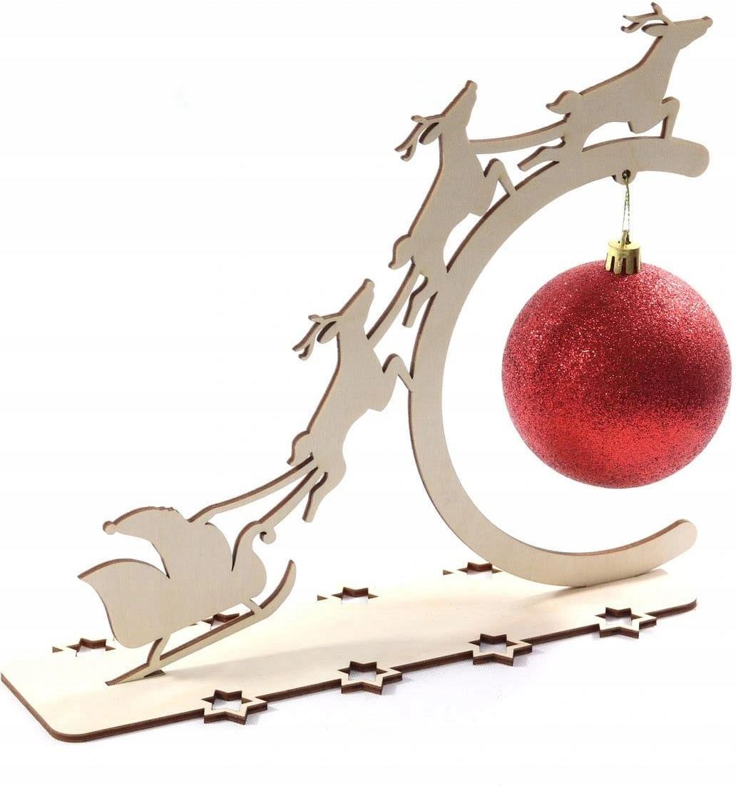 Drewniany stojak na bombki, idealny na święta Bożego Narodzenia. W gratisie bombka drewniana ze sklejki o średnicy 10cm! Wysokość: 21 cm. Wymiary podstawki: 24x8 cm. Maksymalny rozmiar bombki: 11 cm. Opakowanie: 1 szt.