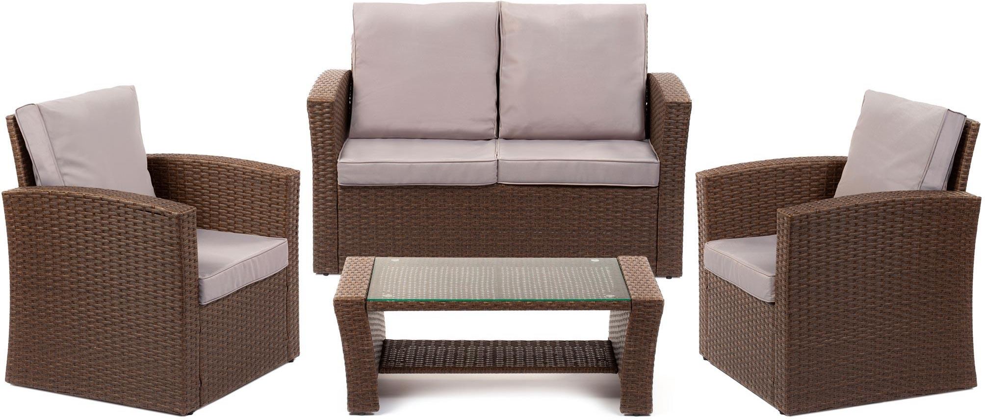 Proszę cieszyć się odrobiną luksusu z meblami ogrodowymi czeskiej firmy FIELDMANN. Zestaw wykonany jest ze sztucznego rattanu i zapewni wygodne i stylowe miejsce do siedzenia w ogrodzie lub na większym tarasie. Dzięki eleganckiemu wzornictwu meble FIELDMANN nie zawstydzą żadnej przestrzeni na zewnątrz ani wewnątrz. Zestaw składa się ze stolika kawowego ze szklanym blatem, dwuosobowego fotela i dwóch foteli. W zestawie znajdują się również poduszki z wysokiej jakości wodoodpornymi pokrowcami, co eliminuje kłopot ze znalezieniem poduszek na siedziska.Ponadto meble te są lekkie i łatwe do przenoszenia. Mogą Państwo bez wysiłku zmieniać aranżację przestrzeni w zależności od nastroju lub uprzątnąć zestaw w razie niepogody. Sztuczny rattan jest łatwy w utrzymaniu, w zasadzie wystarczy wilgotna szmatka i zwykły detergent. Ten wytrzymały zestaw ogrodowy sprawi, że Państwa przestrzeń zewnętrzna będzie wygodna przez wiele lat, zapewniając komfort i relaks bez nadmiernej konserwacji.Wymiary: stół - 73 x 45 x 36 cm fotel - 64 x 73 x 82 cm sofa - 116 x 73 x 82 cm
