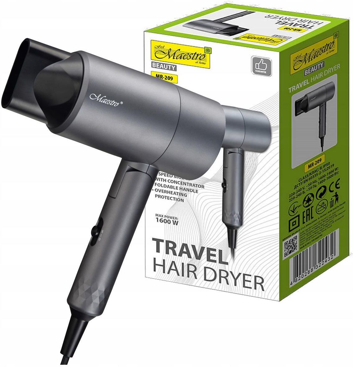 MAESTRO MR209 suszarka do włosów 1600W składana Suszarka do włosów Maestro MR-209 to doskonałe rozwiązanie dla osób poszukujących wydajnego i praktycznego urządzenia do stylizacji włosów. Z mocą 1600 W i silnikiem DC, zapewnia szybkie i efektywne suszenie, a także możliwość precyzyjnego …
