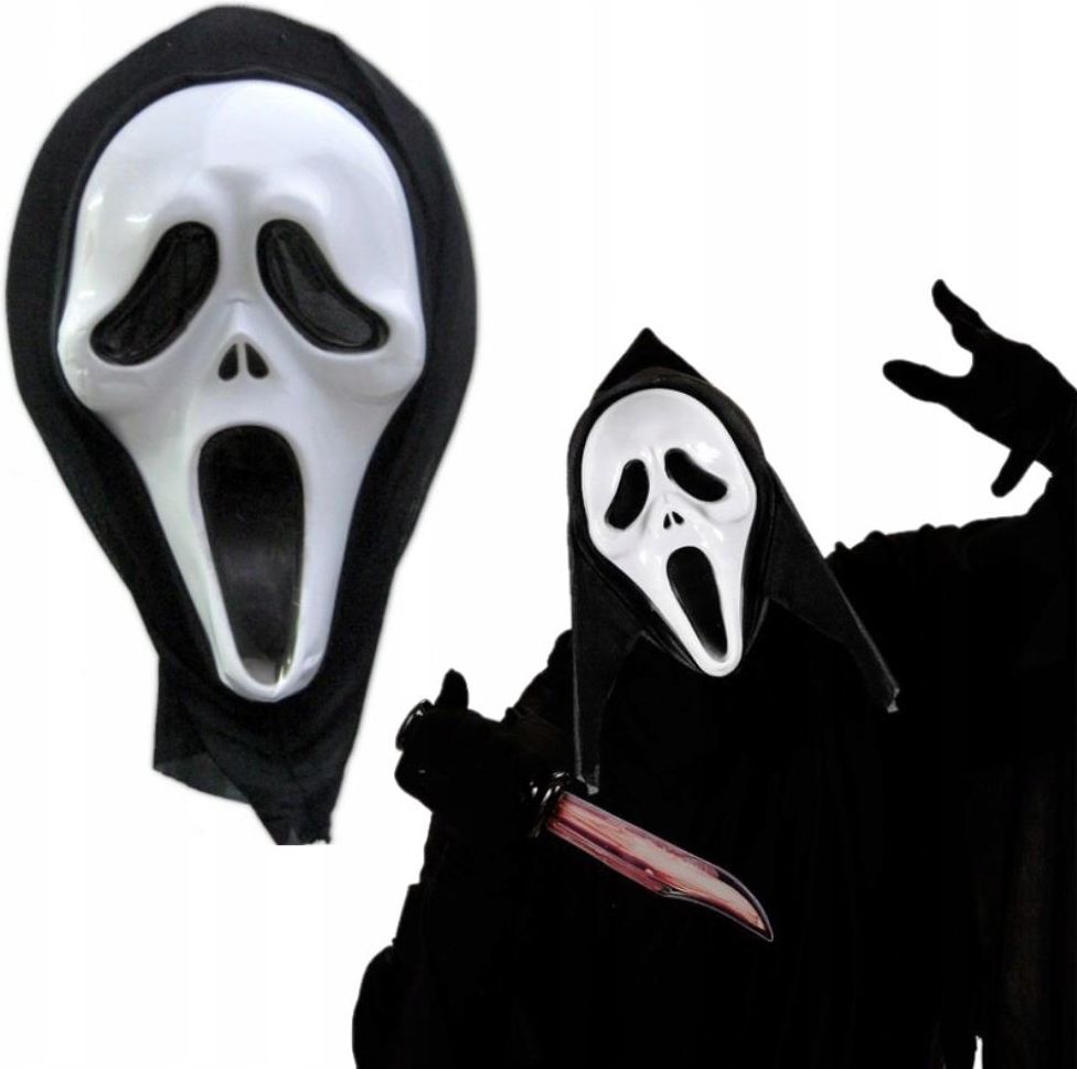 BM5 MASKA KRZYK Z KAPTUREM MASKI SCREAM HALLOWEEN Maska Krzyk z kapturem Cechy produktu Maska znana z filmu "Krzyk" spełni oczekiwania każdego fana horroru. Doskonale sprawdzi się podczas halloweenowej imprezy, karnawału, czy innej okazji. Dzięki niej stworzysz niezapomnianą, mroczną i przerażającą …