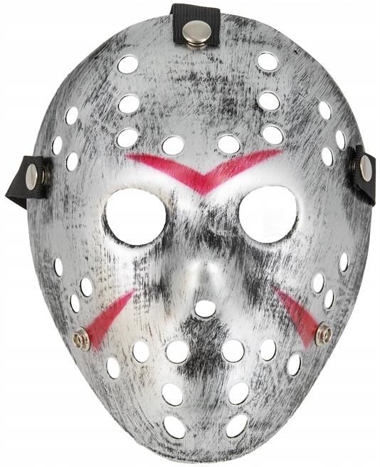 MASKA halloween JASON PIĄTEK 13 hokejowa SREBRNA Maska "Hokejowa - Jason", srebrny, PartyPal Starannie wykonana mask hokejowa, raczej nie do wykorzystania na lodowisku, a jako mrożący krew w żyłach atrybut mordercy psychopaty. Do przebrania na halloween oczywiście. Maska wykonana jest z plastiku, jest efektownie pomalowana i stanowi świetne uzupełnienie stroju które nada mu charakteru i sprawi że zapadnie w pamięci każdemu z gości. marka: PartyPal, ilość: 1 szt, kolor: srebrny, szerokość: 20 cm, wysokość: 24.5 cm, okazja: Halloween, bohater: Jason Voorhees, postać: nie dotyczy, materiał: tworzywo sztuczne / plastik, typ: na twarz (tylko przód), kod produktu: PP134092, ...