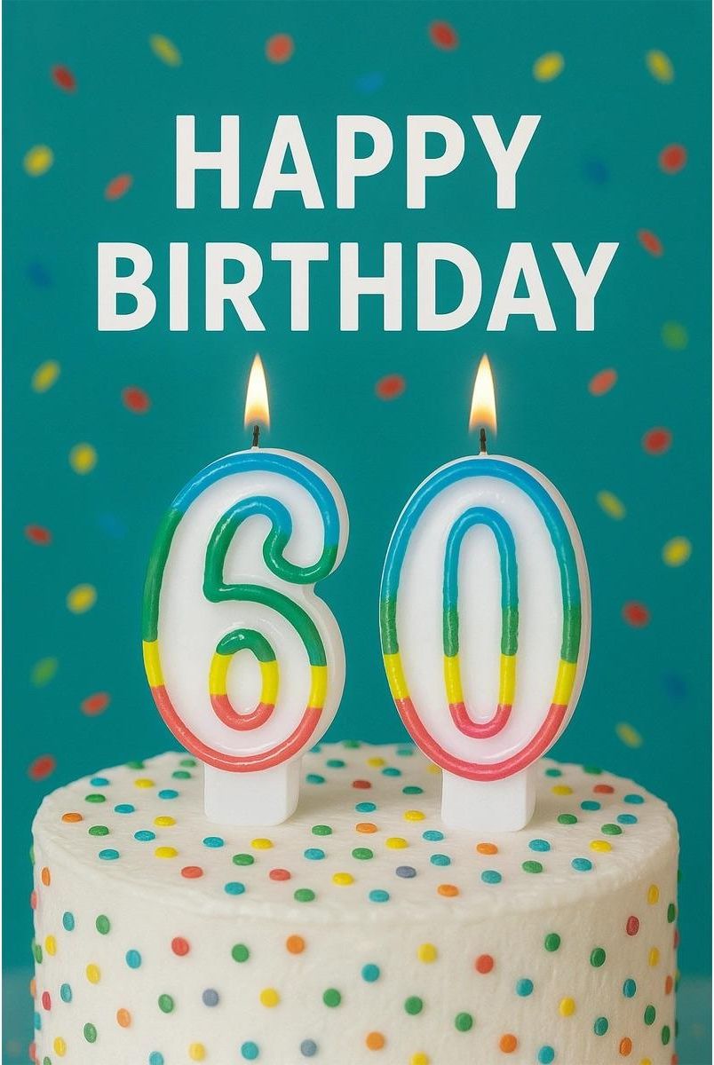 Świeczki urodzinowe cyferki sześćdziesiąt "60" z kolorową obwódką na sześćdziesiąte urodziny. Wysokość: 8,5 cm. Opakowanie: 2 szt.