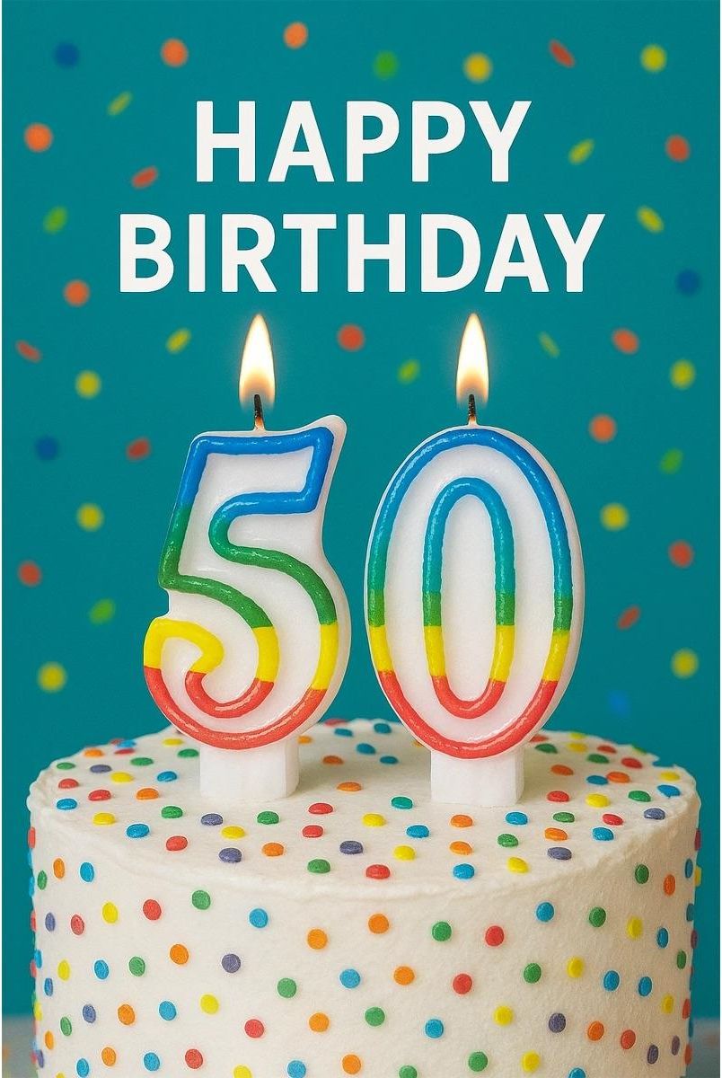 PartyPal Świeczki Cyferki 50 z Kolorową Obwódką 8,5 cm 2 Sztuki Tuchola