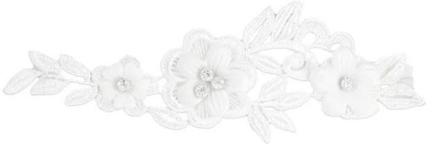 Podwiązka koronkowa w kolorze białym z kwiecistym wzorem oraz cyrkoniami. Idealna na ślub czy wieczór panieński. Szerokość: 2-7 cm. Obwód : ok. 38 cm. Materiał elastyczny. Opakowanie 1 szt.