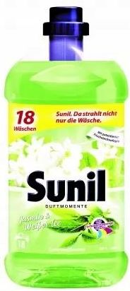 Sunil płyn do prania 1,314l Color Jaśmin 18 prań Sunil płyn do prania 1,314l Color Jaśmin 18 prań Sunil to silnie działający we wszystkich temperaturach płyn do prania. W szczególności nadaje się do prania tkanin białych i o trwałych kolorach. Aktywna moc usuwania plam od 20°C umożliwia pranie w niskich temperaturach, pozostawiając prane tkaniny otulone zapachem kwiatu jaśminu i białą herbatą . Praktyczne opakowanie jest wygodne do przechowywania, a korek ułatwia rekomendowane dozowanie. Nowa butelka Sunil jest jedną z najlżejszych butelek na detergent w Niemczech i w 100% nadaje się do recyklingu. To oszczędza nasze zasoby i środowisko. Dane produktu: Pochodzenie :Niemcy Marka : Sunil Pojemność:1,314l Ilość prań : 18 Przeznaczenie: tkaniny kolorowe Doskonały wybór !! Niemiecki płyn do prania odzieży kolorowej.