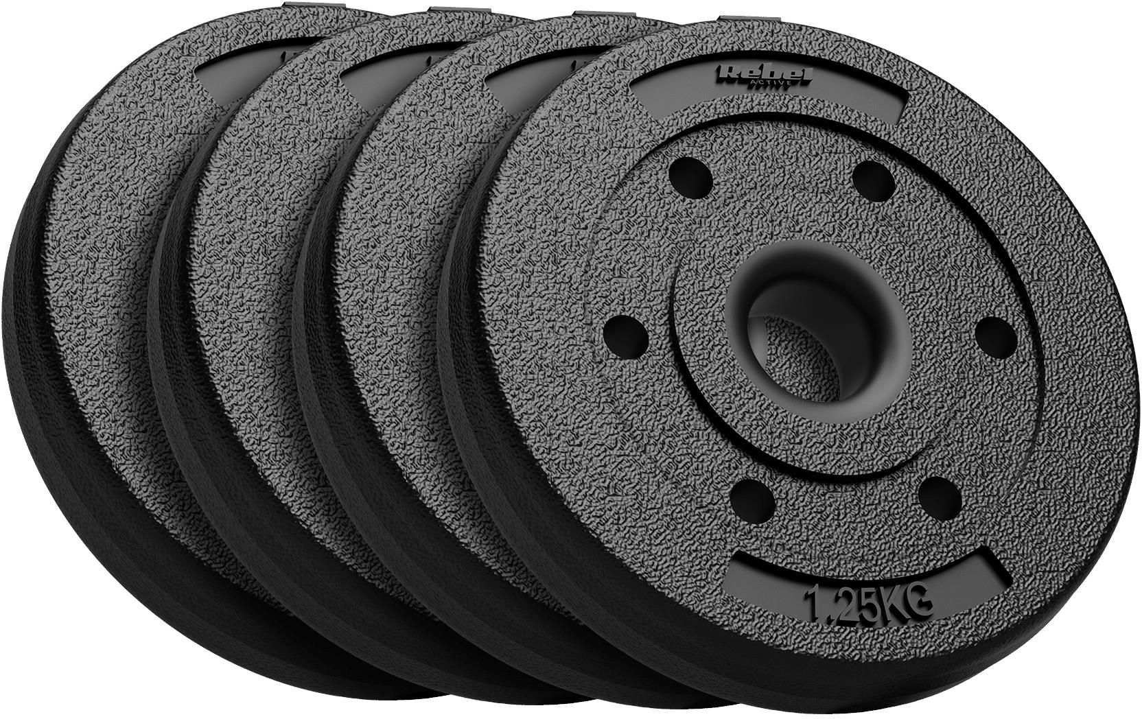 Obciążenia bitumiczne – zestaw 4 talerze Rozpoczynasz swoją przygodę z treningiem siłowym i szukasz zestawu obciążeń bitumicznych do stopniowego budowania masy mięśniowej i siły? RB-2100 z serii Rebel Active jest dla Ciebie. Trening z obciążeniami pozwoli Ci skutecznie kształtować sylwetkę poprzez rozwijanie i wzmacnianie różnych grup mięśniowych, a także poprawiać wydolność i redukować tkankę tłuszczową. Poczuj tę moc! Zestaw obciążeń bitumicznych Rebel Active składa się z 4 talerzy o wadze 1,25 kg każdy, co pozwoli Ci dostosować trening do własnych możliwości. To idealne rozwiązanie dla treningu siłowego, wzmacniania mięśni, czy treningu interwałowego zarówno dla osób początkujących, jak i bardziej zaawansowanych. Trenuj, gdzie chcesz Ważący 5 kg zestaw RBA-2100 Rebel Active będzie idealnym towarzyszem treningowym zarówno w domu, jak i w podróży. Dzięki kompaktowym rozmiarom i ergonomicznemu kształtowi talerzy, ich przechowywanie oraz transport są niezwykle łatwe. Specjalna, zaokrąglona budowa ze ściętą krawędzią umożliwia bezpieczny trening domowy bez obaw o przypadkowe zniszczenie podłogi czy mebli. Poczuj stabilność Budowa obciążeń Rebel Active będąca mieszanką masy bitumicznej otoczonej powłoką PVC sprawia, że są one odporne na zniszczenia. Co ważne talerze bitumiczne wykonane z trwałego materiału gwarantują nie tylko długą żywotność, ale także bezpieczeństwo podczas intensywnego treningu. Grubość obciążenia wynosząca 30 mm zapewnia stabilność i wygodę użytkowania. Swoboda wyboru Zestaw Rebel Active pozwala trenować wznosy i przysiady przy pomocy samych ciężarków. Możesz też założyć obciążenia na gryf. Standardowa średnica otworu każdego z obciążeń wynosząca 31 mm sprawia, że będą one kompatybilne z większością popularnych sztang. Specyfikacja Ilość obciążeń w zestawie: 4 Waga talerza: 1,25 kg Waga zestawu: 5 kg Średnica otworu: 31 mm Średnica talerza: 17,5 cm Grubość talerza: 30 mm Powłoka: PVC Tolerancja wagi talerzy: ± 5% Wymiary opakowania: 38 x 21 x 8 cm
