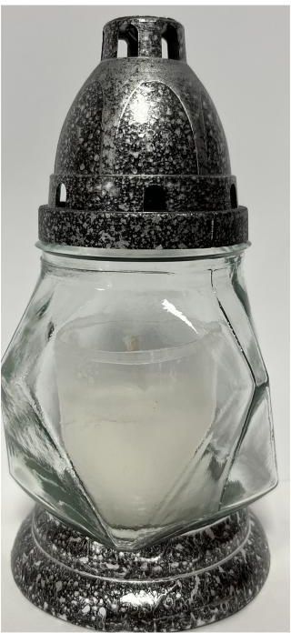 Znicz Z-06 mały romb firmy Rolchem Znicz na każdą okazję. Gdy chcesz odwiedzić grób bliskiej lub znanej Ci osoby. Gdy przyjdzie czas na zadumę i modlitwę możesz zabrać znicz symbol światła, przemijającego jak też i nowego życia. To mały, szklany znicz elegancki w swej prostocie. Specyfikacja Firma: Rolchem Kolor zdobień: srebrny Kształt: kryształ lodu Symbol: Z-76 B Wysokość: 16 cm Przybliżony czas palenia: 20 h