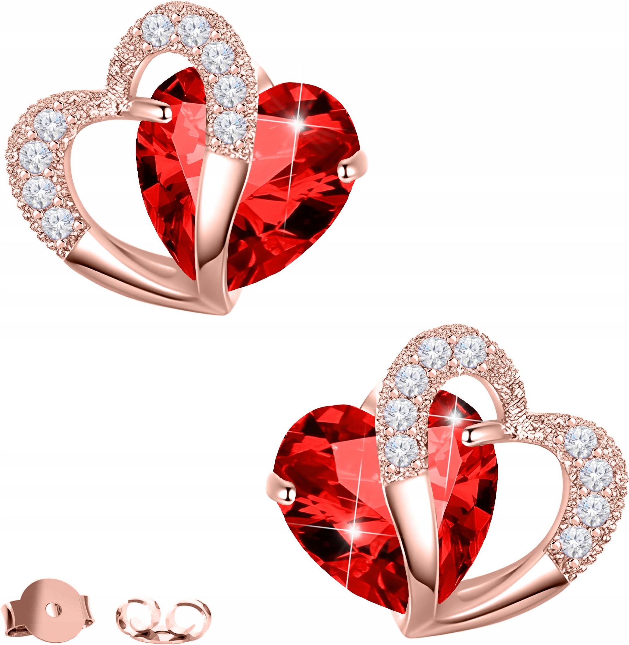 Larezo Kolczyki Pozłacane 750 18K Czerwone Cyrkonie Kryształowe Serca Srebro 925 Tuchów