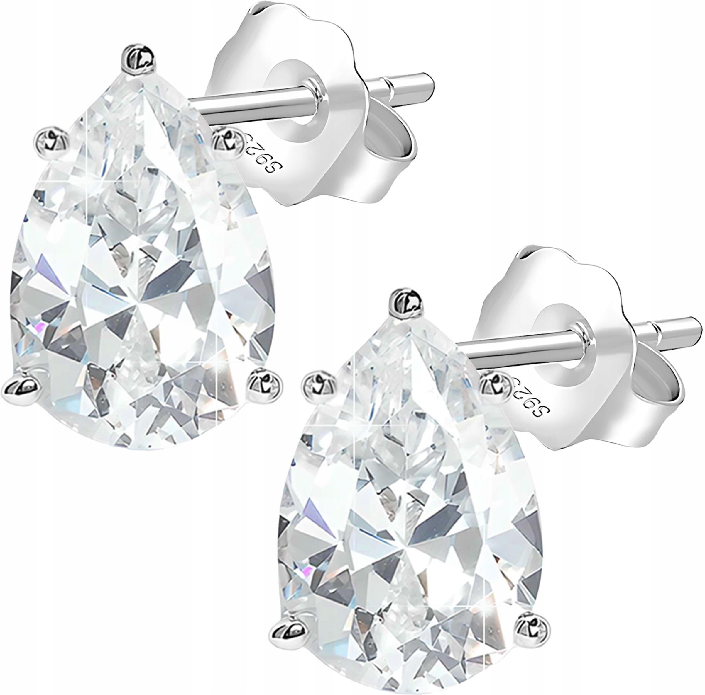 Larezo Kolczyki Srebrne 925 Wkrętki z Kryształem na Sztyfcie Łezki Krople Wody H2O Tuchów