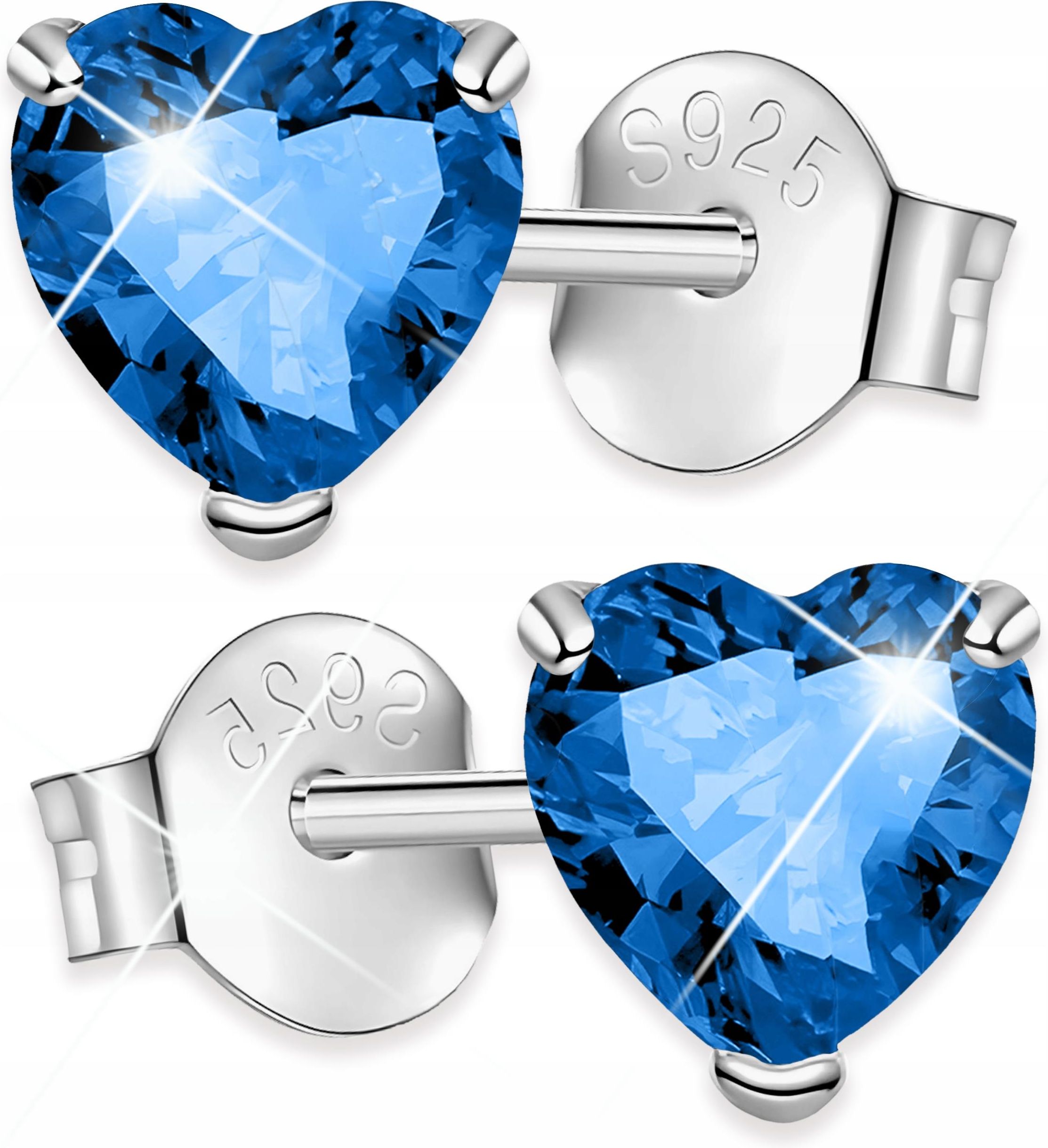 Larezo Kolczyki Srebrne Kryształowe Niebieskie Serca Serduszka Cyrkonie SREBRO 925 Tuchów