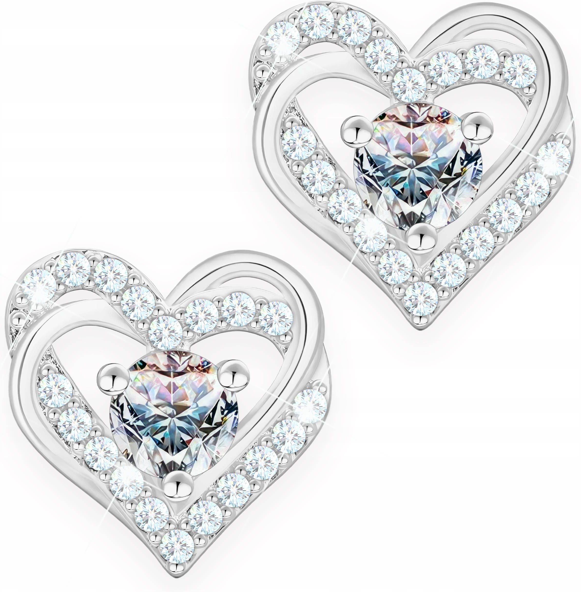 Larezo Kolczyki Srebrne Serca z Białym Oczkiem Kryształowe Serduszka SREBRO 925 Tuchów