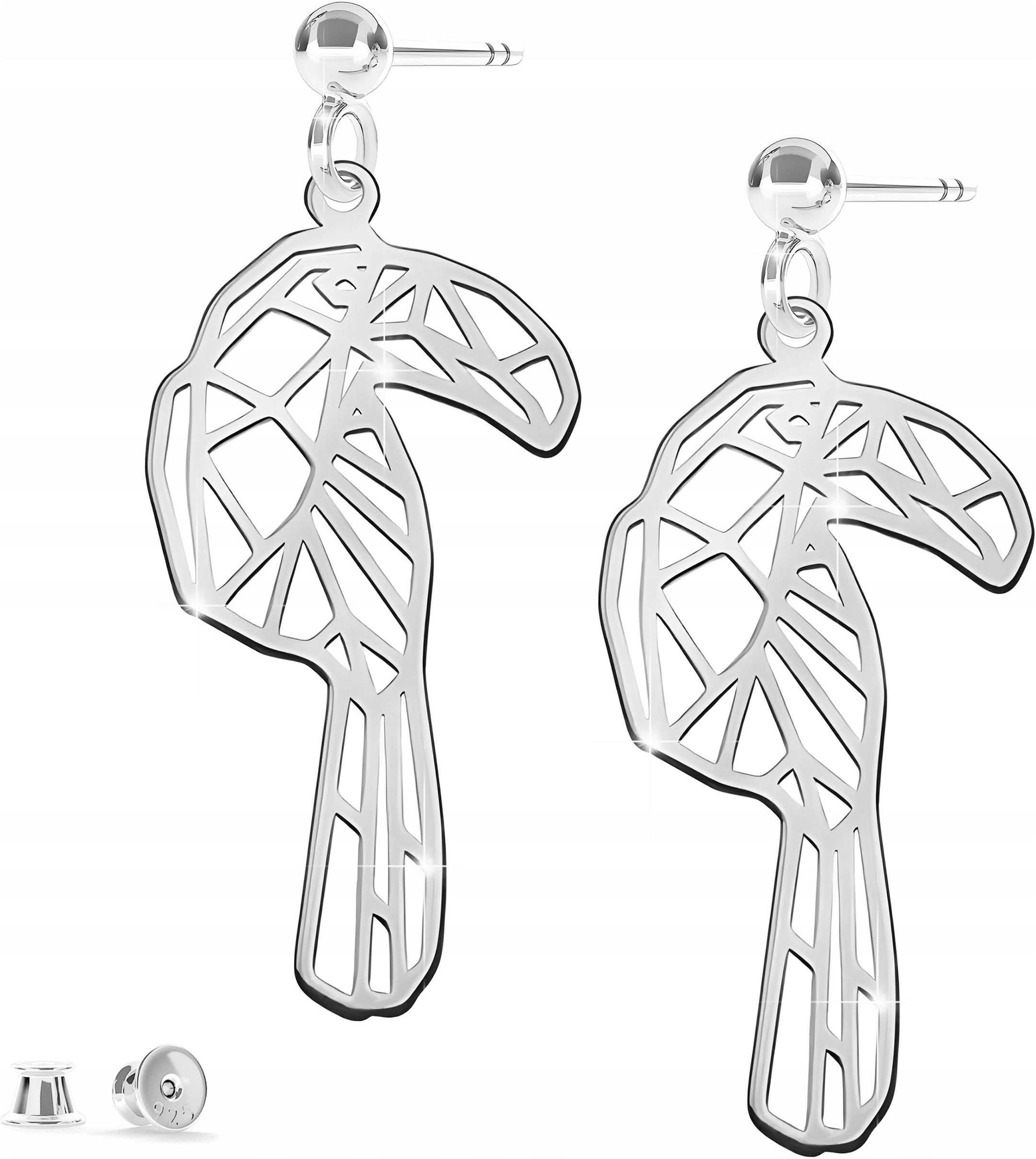 Larezo Kolczyki Srebrne Wkrętki 925 Ażurowa Blaszka z Ptakiem Rajski Ptak Tukan Tuchów