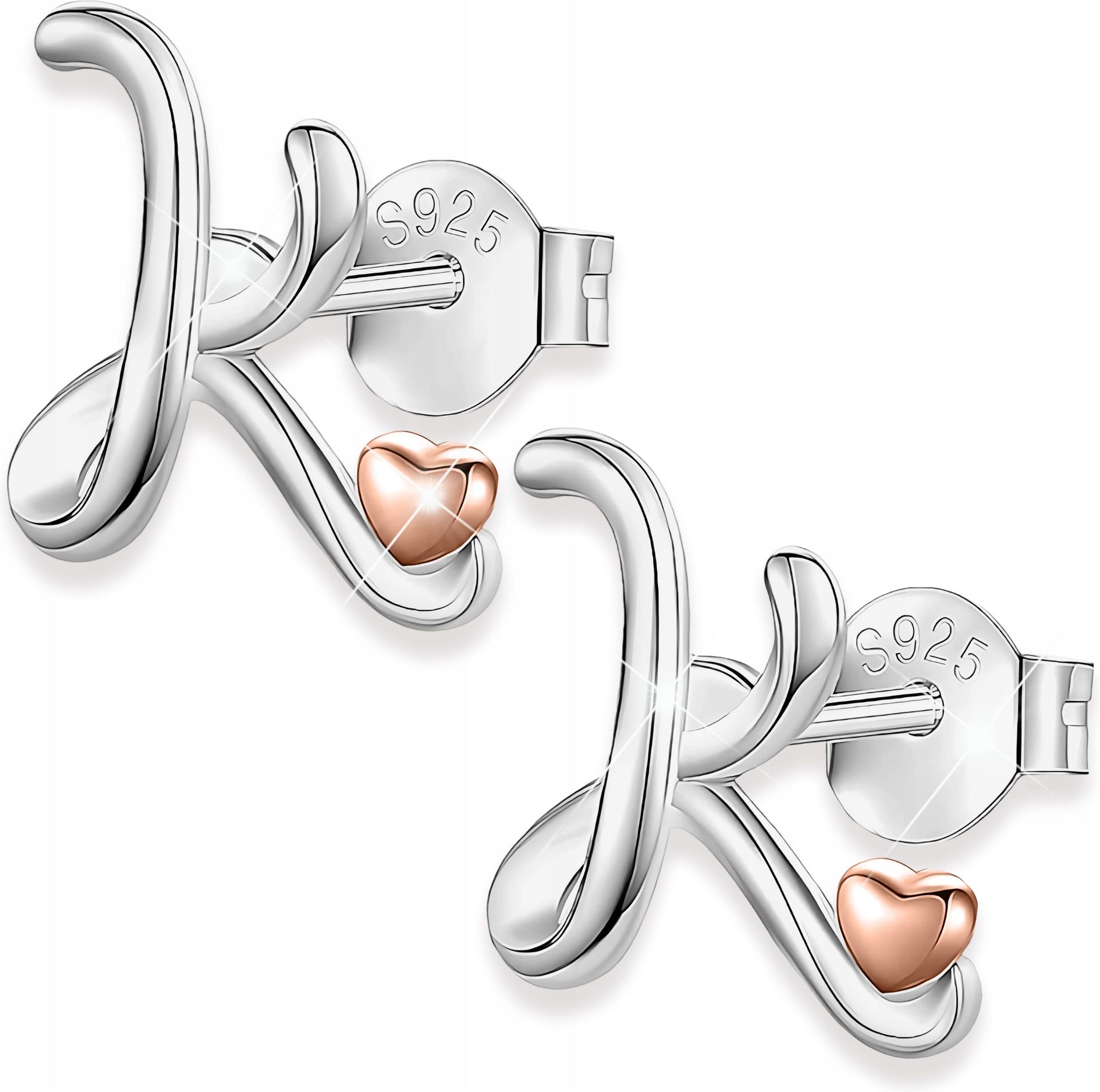 Larezo Kolczyki Srebrne z Literkami Serce Inicjały Litera Literka K SREBRO 925 Tuchów