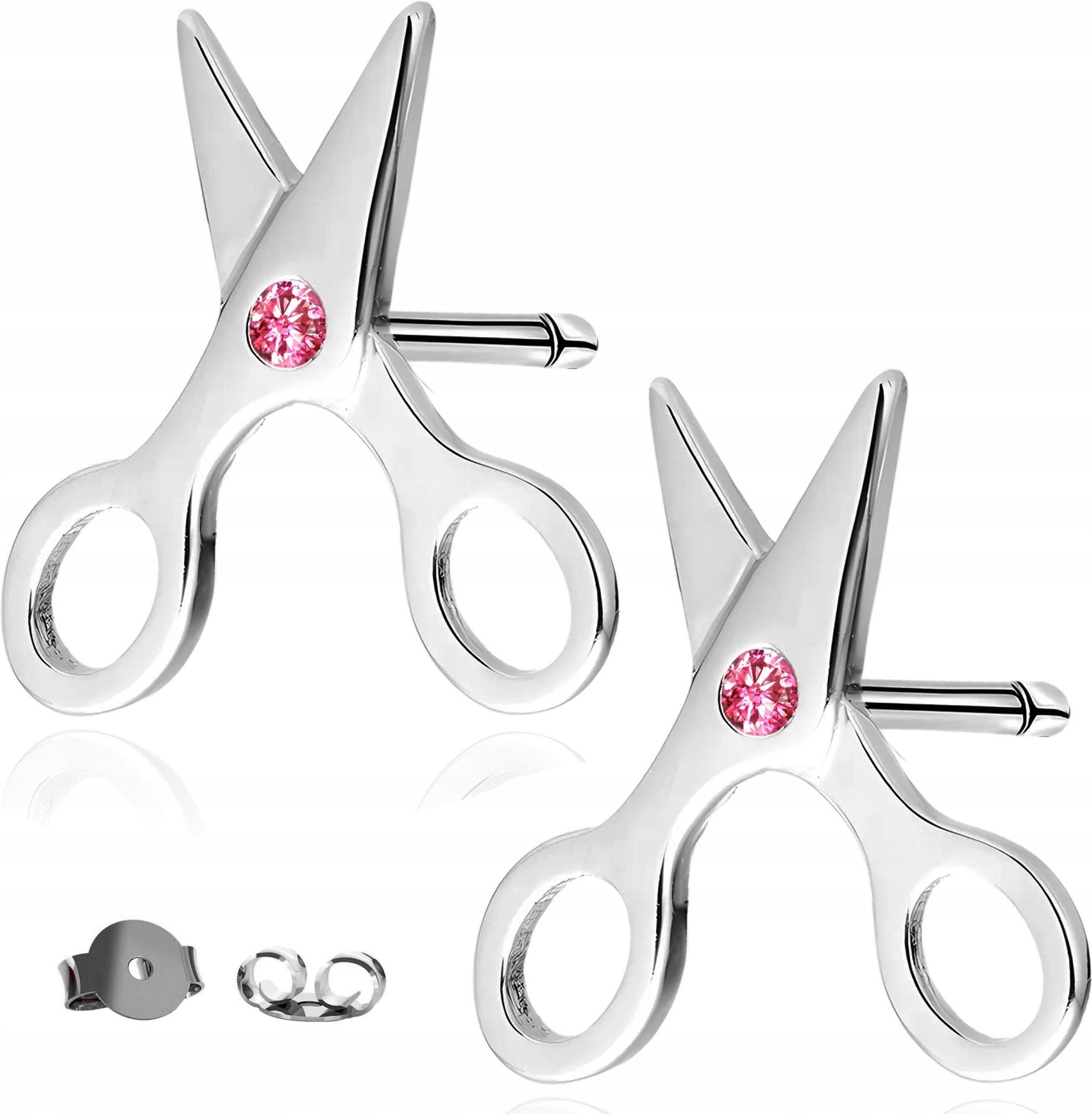 Larezo Srebrne Kolczyki Na Sztyfcie Nożyczki Z Czerwonym Oczkiem Nożyce Srebro 925 Tuchów