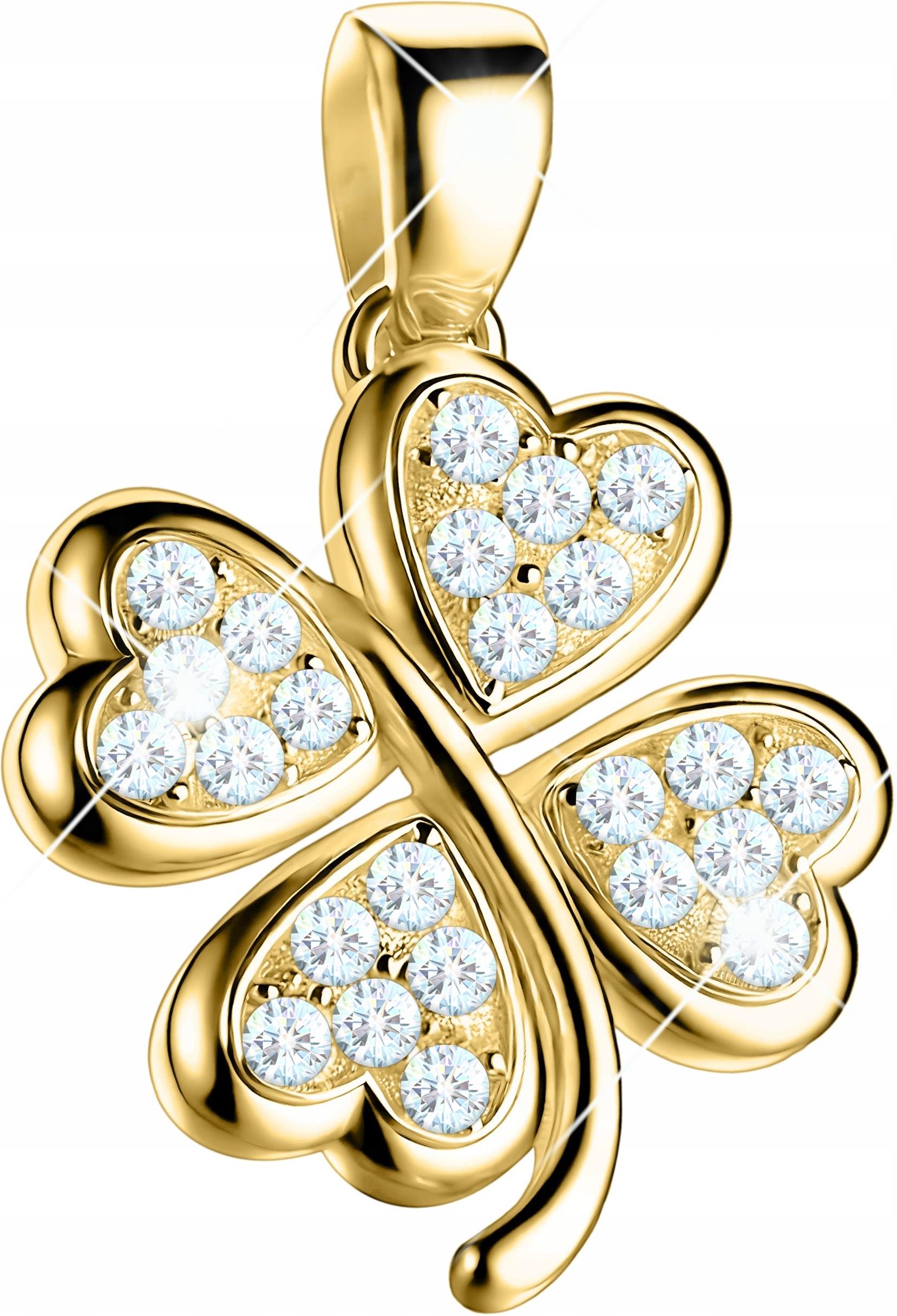 Larezo Złota Zawieszka Do Łańcuszka Czterolistna Koniczynka Cyrkonie Srebro 925 Tuchów