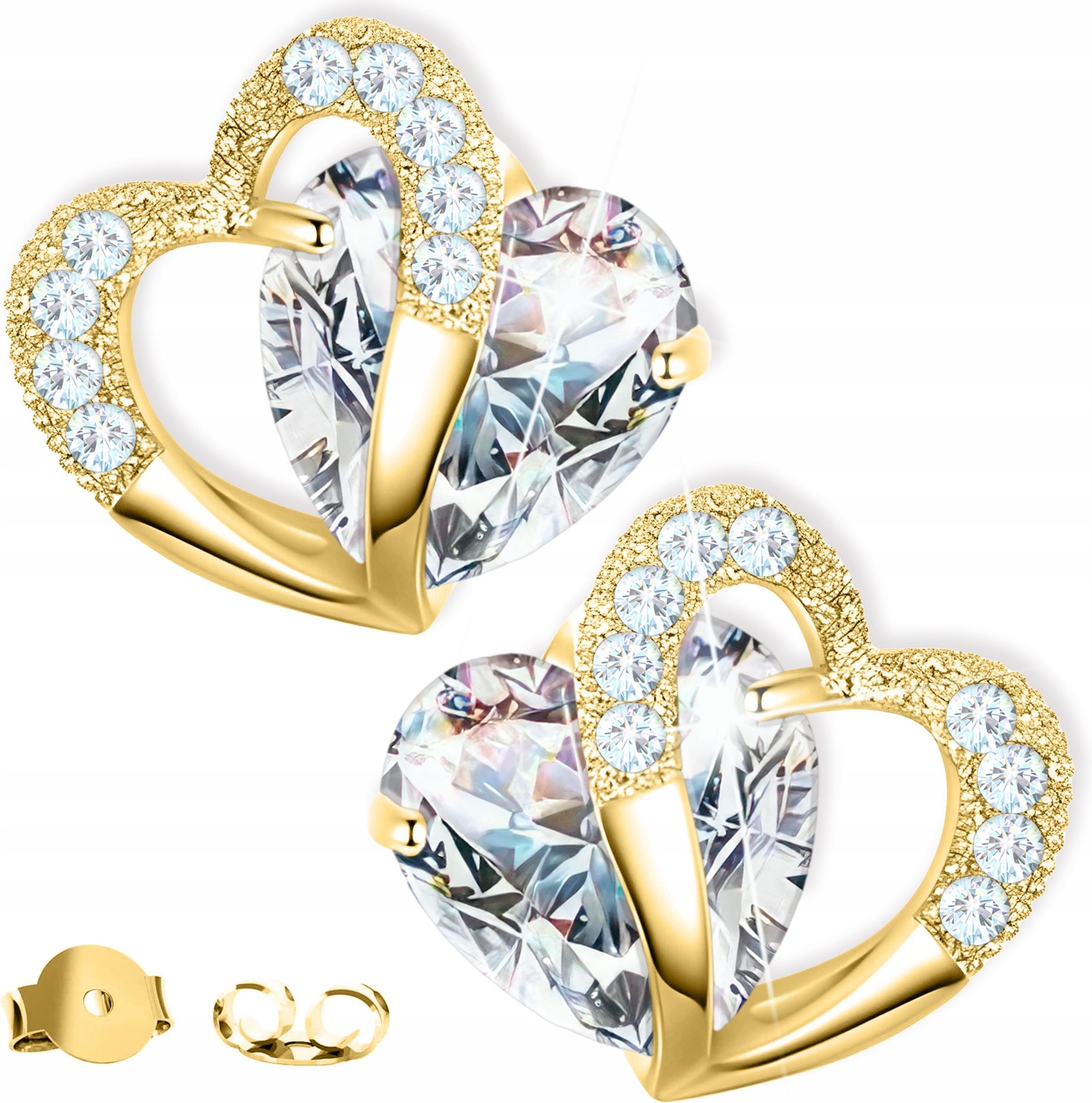 Larezo Złote Kolczyki Białe Kryształowe Lśniące Duże Serca z Cyrkoniami SREBRO 925 Tuchów