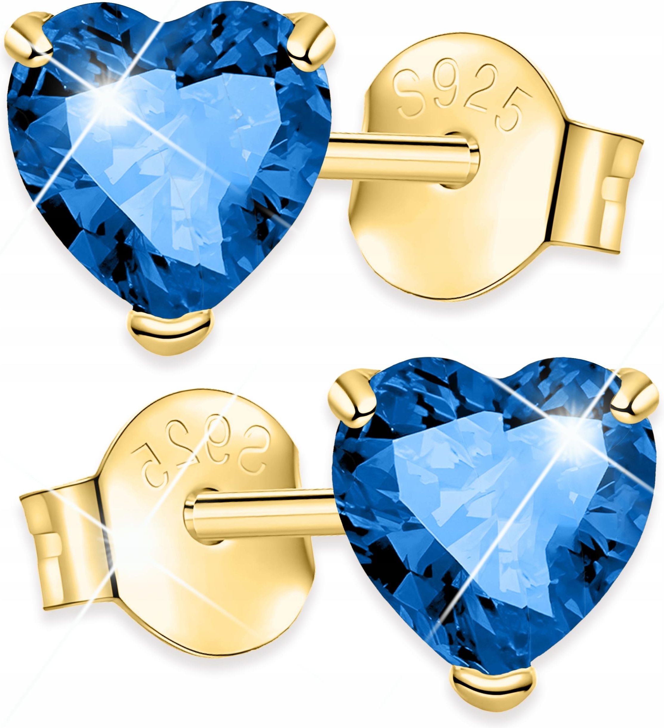 Larezo Złote Kolczyki Kryształowe Niebieskie Serca Serduszka 585 Heart SREBRO 925 Tuchów