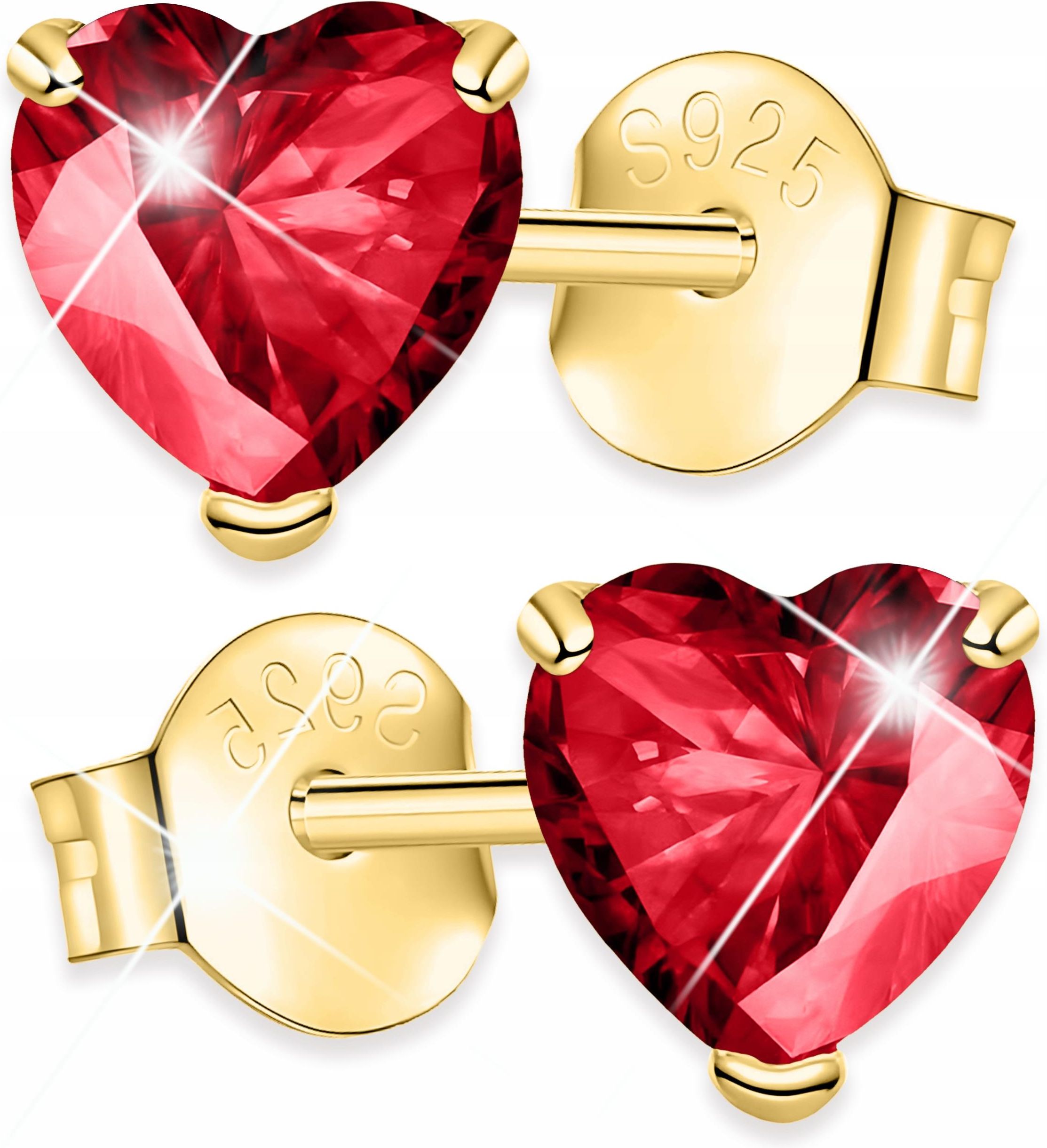 Larezo Złote Kolczyki Serce 585 Rubinowe Kryształowe Czerwone Serca SREBRO 925 Tuchów