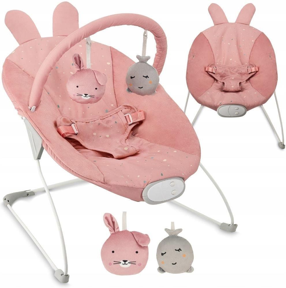 Momi Leżaczek Dla Niemowląt Glossy Różowy Zabawki Melodie Wibracje Tuchów